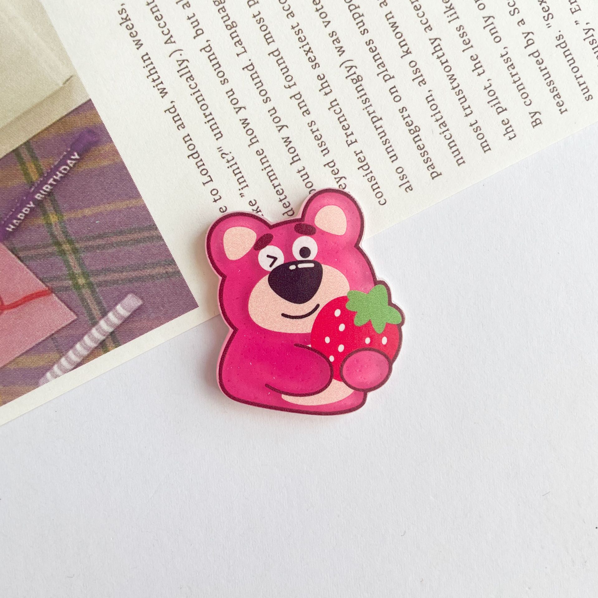 귀여운 만화 딸기 곰 브로치 에 달콤한 소녀 심장 아크릴 핀 학생 배지 여자 친구 선물스토어 가기