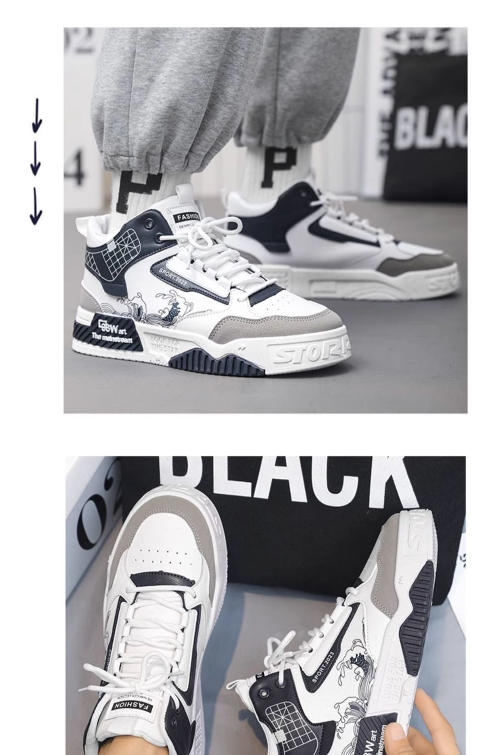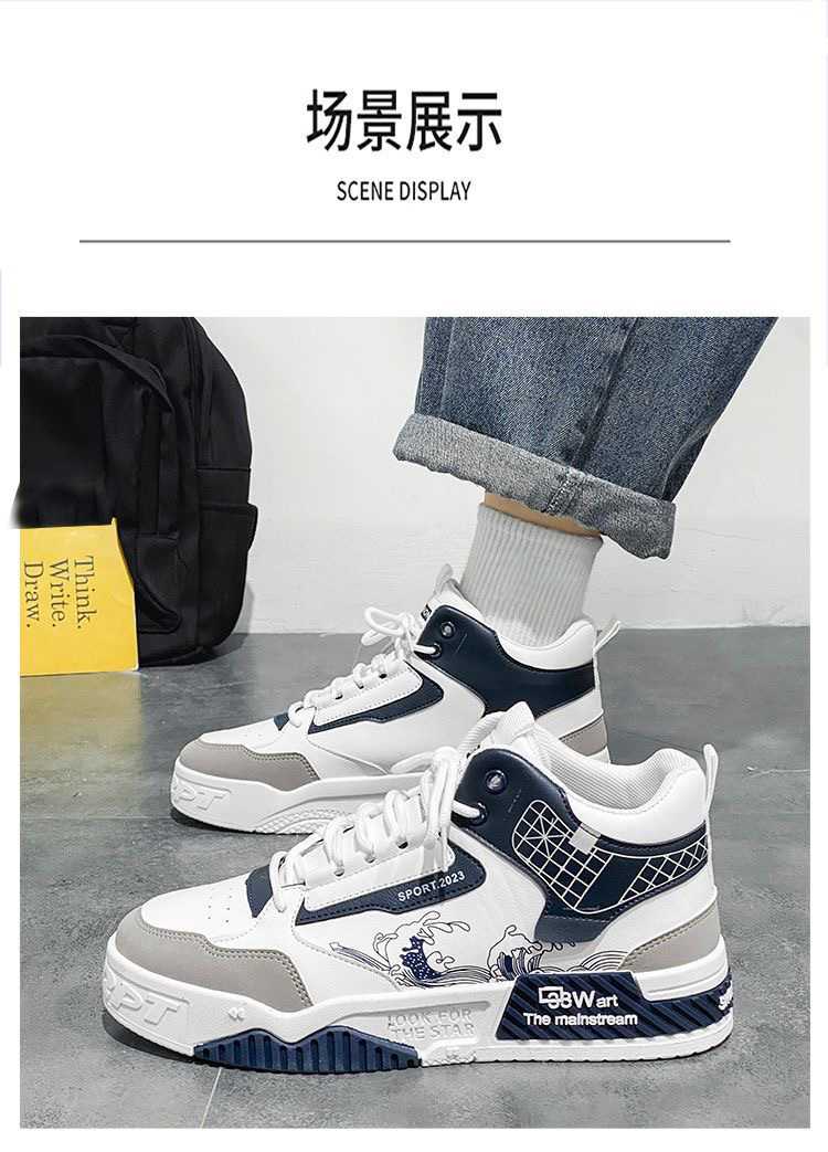 남자 신발 2024 새로운 여름 하이 탑 신발 남자 대학 스타일 트렌디 한 신발 트렌디 한 올 매치 스포츠 보드 신발스토어 가기