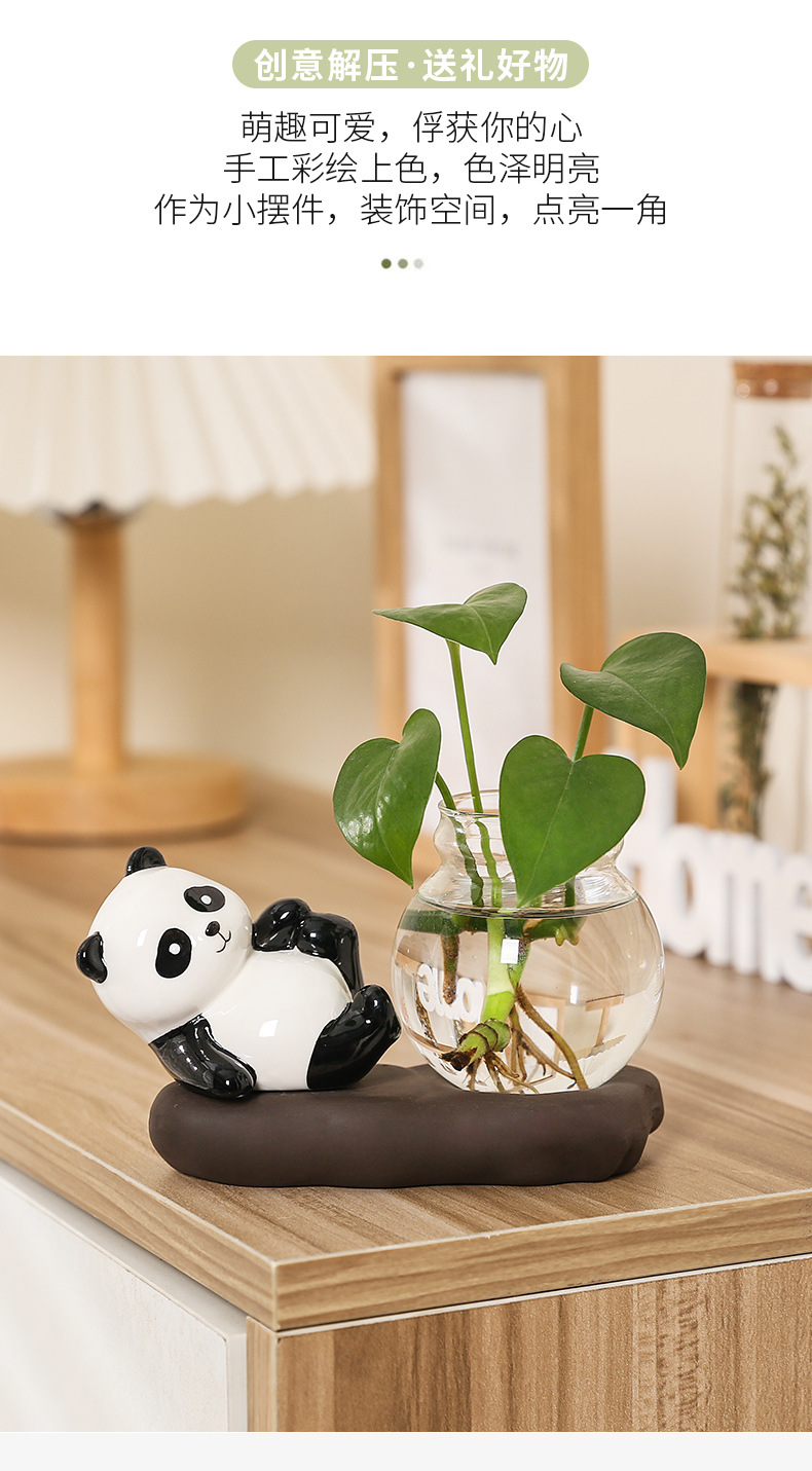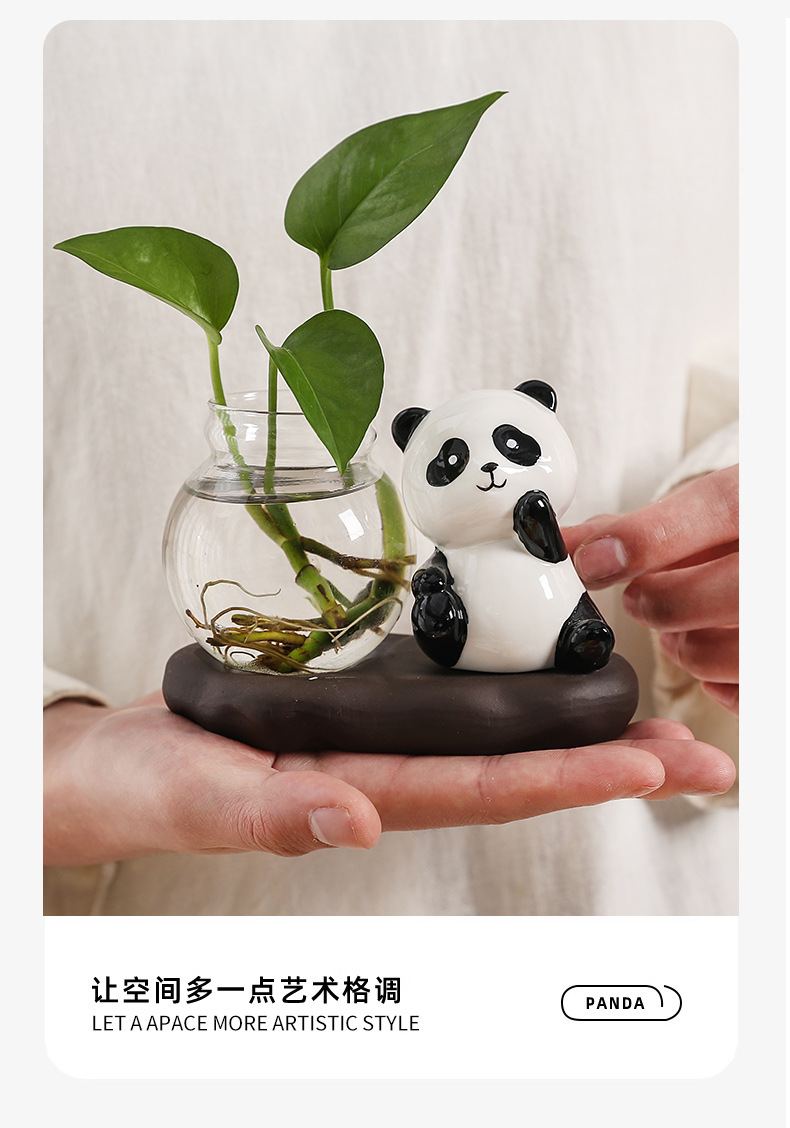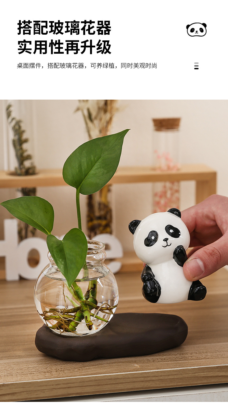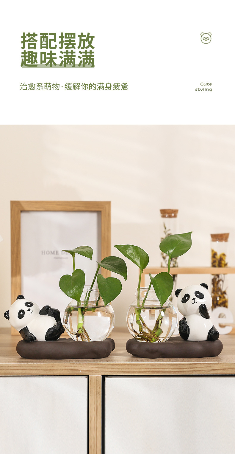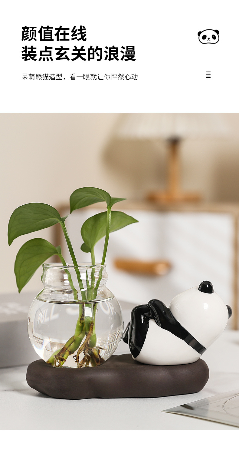 팬더 그린 로즈 수경 꽃병 유리 투명 아쿠아 꽃 꽃 냄비 꽃 바탕 화면 장식품 공예
