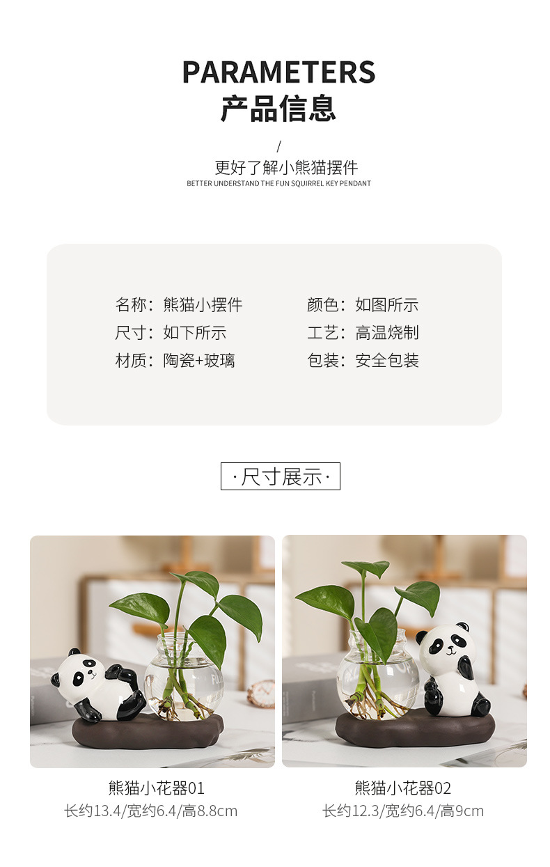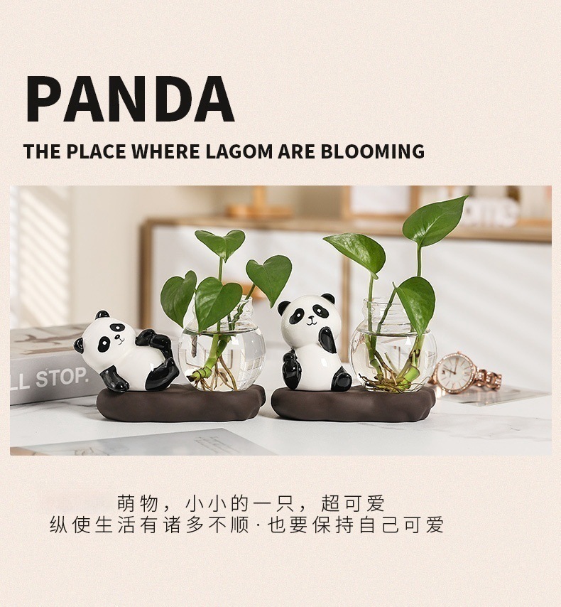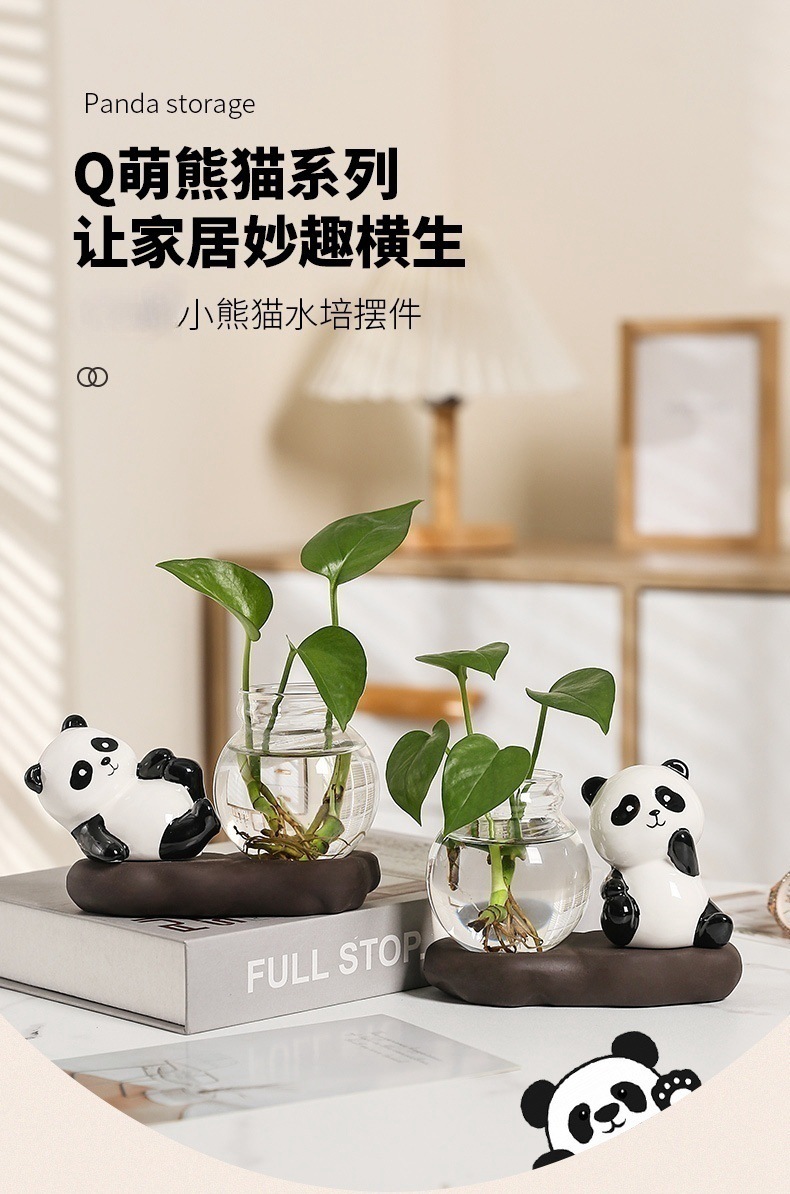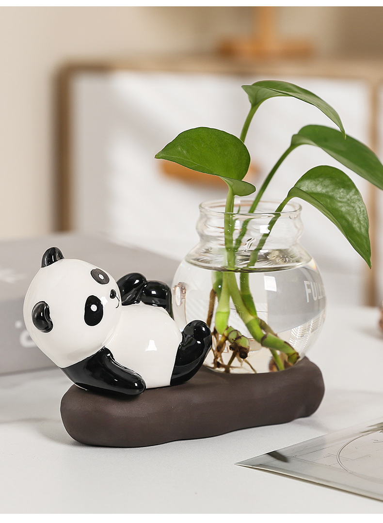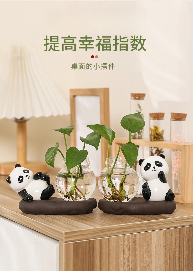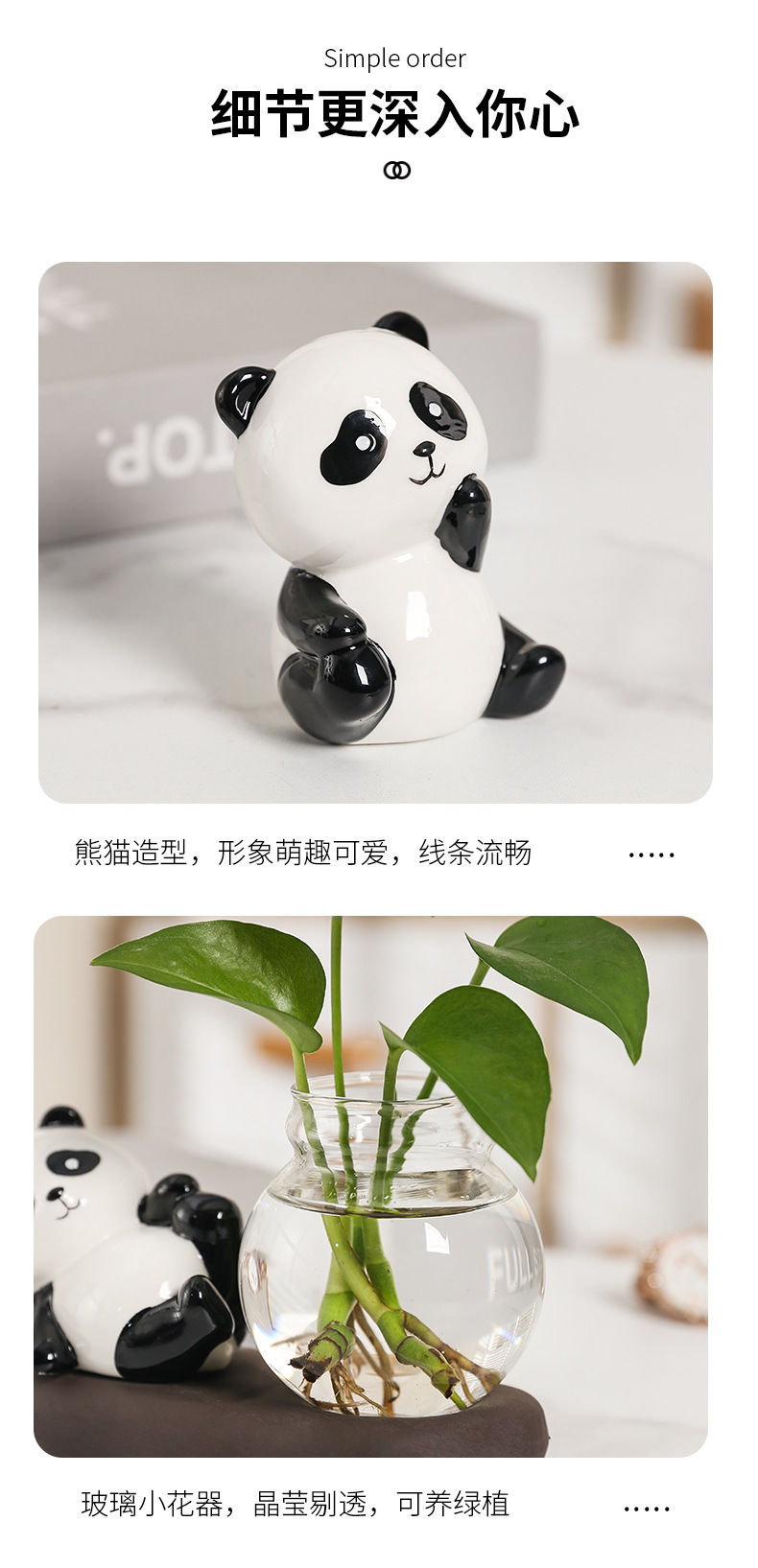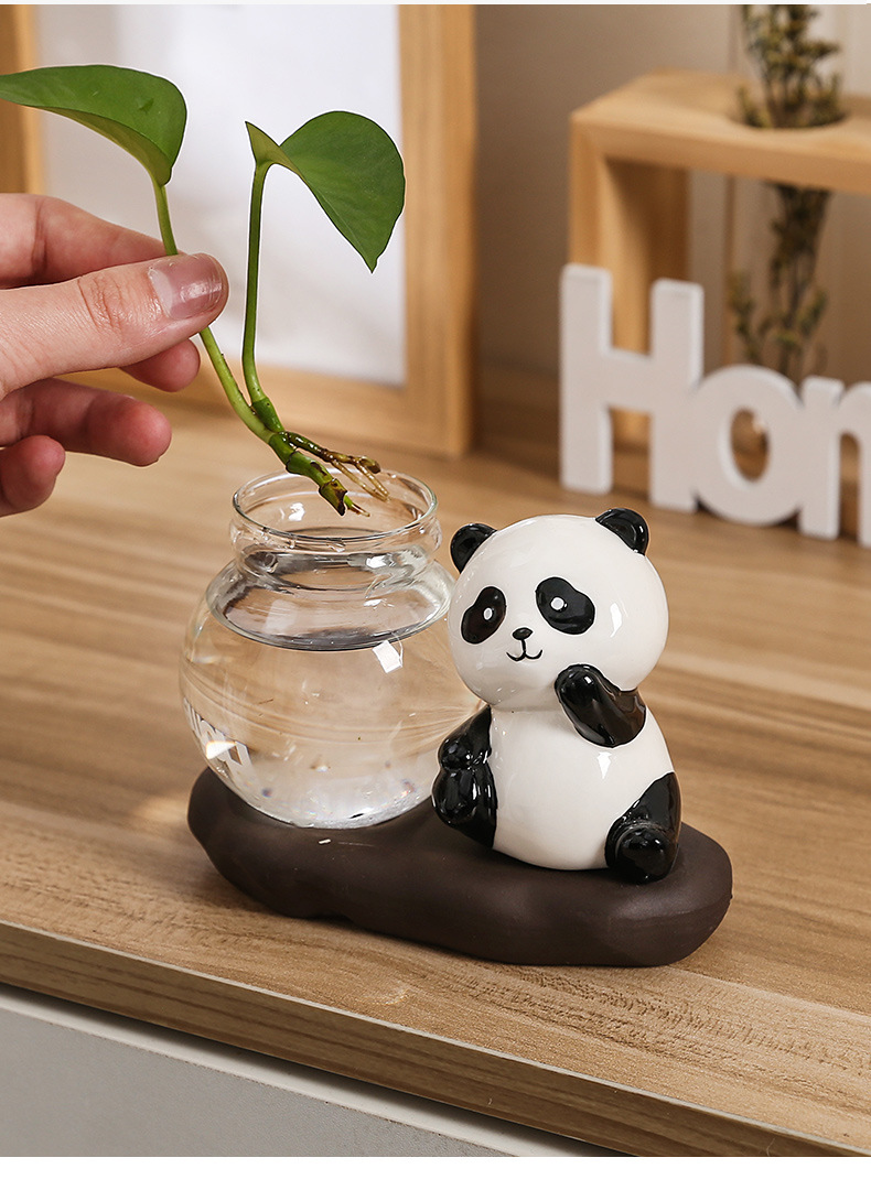 팬더 그린 로즈 수경 꽃병 유리 투명 아쿠아 꽃 꽃 냄비 꽃 바탕 화면 장식품 공예