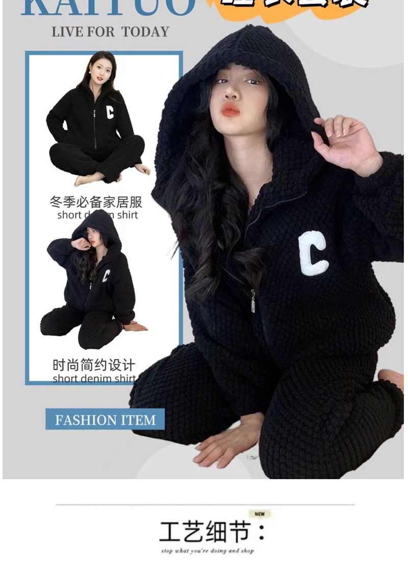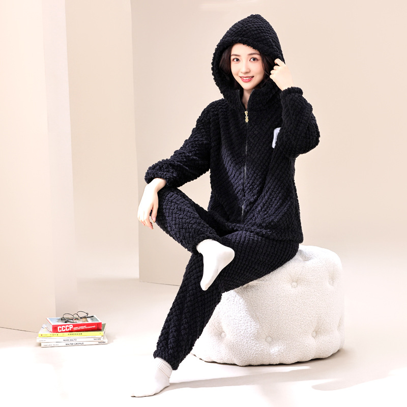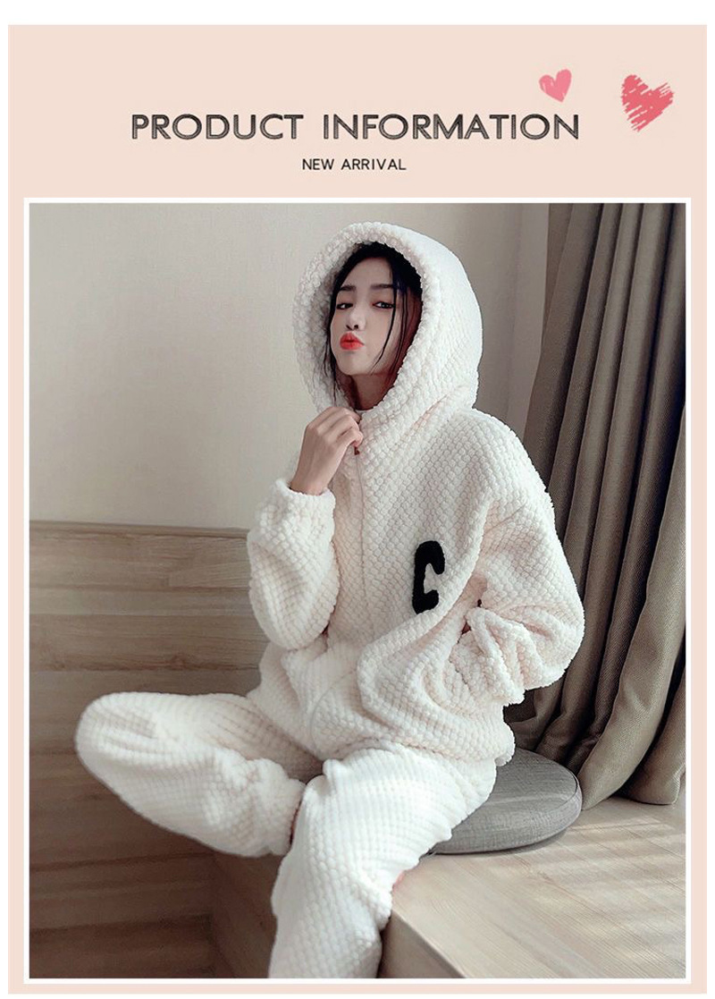 인터넷 빨간 잠옷 여성의 가을 겨울 스포츠 후드 C 기모 두꺼운 지퍼 학생들은 홈 옷을 입을 수 세트스토어 가기