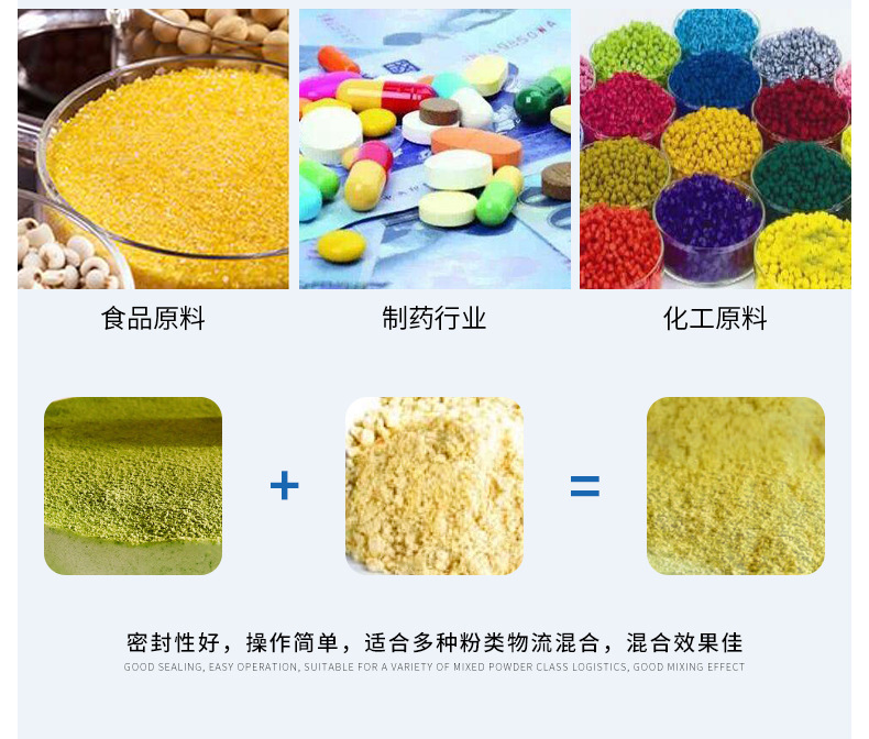 该机是一种新型高效、高精度的混合设备,广泛适用于制药、化工、饲料等待业的各种粉体的混合。