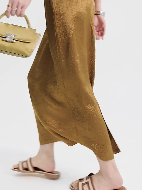 Acetic Acid Gilt 스커트 여성 여름 주름 질감 높은 허리 빛 럭셔리 Satin Xiangyun 원사 분할 틈새 미디 스커트