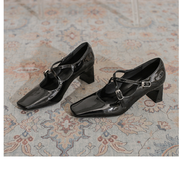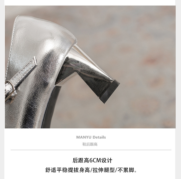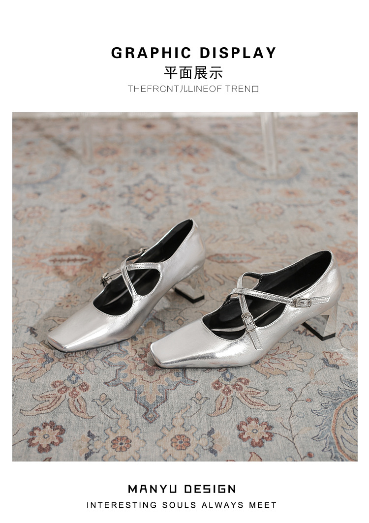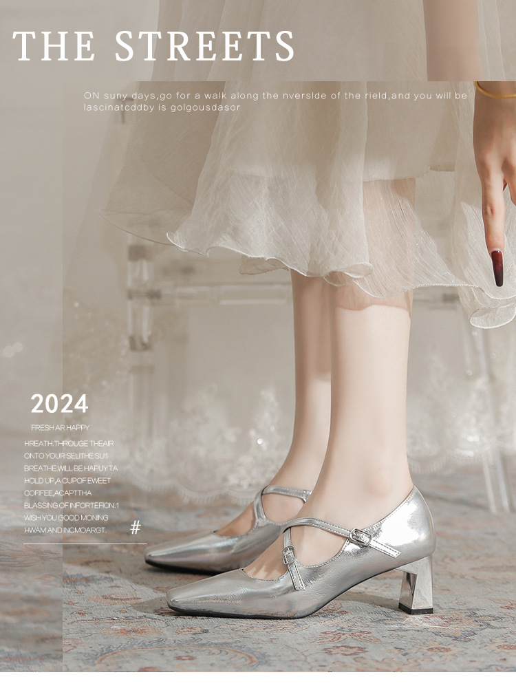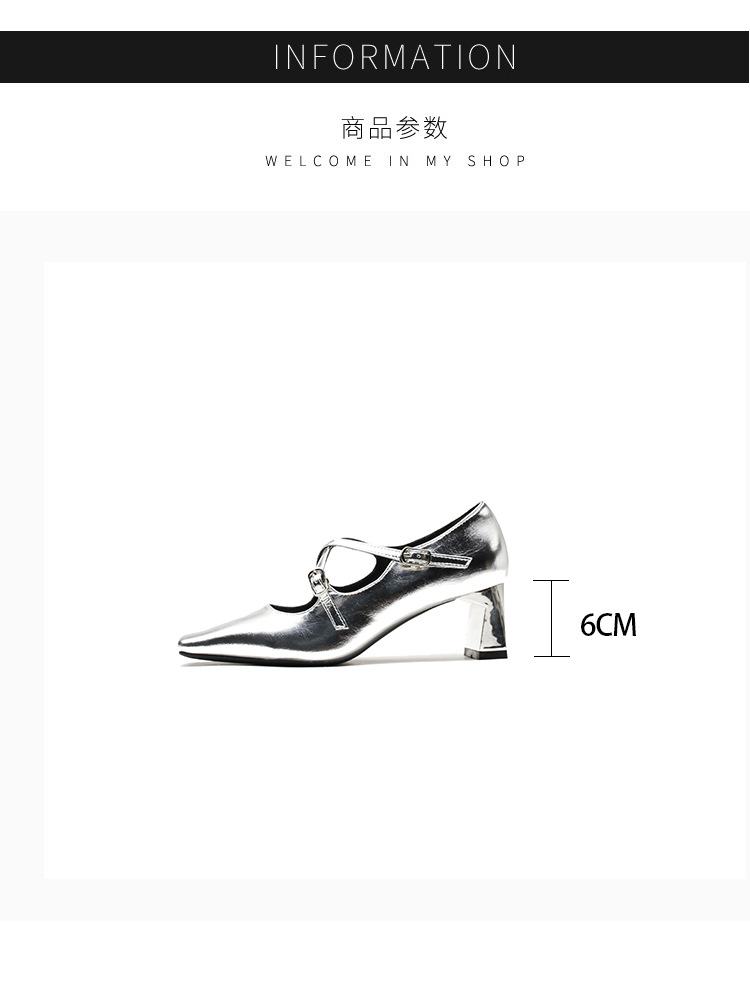 6368-3 크로스 버클 뉴 메리 제인 여성 신발 스퀘어 토 레트로 실버 두꺼운 힐 얕은 입 올 매치 프렌치 싱글 슈즈스토어 가기