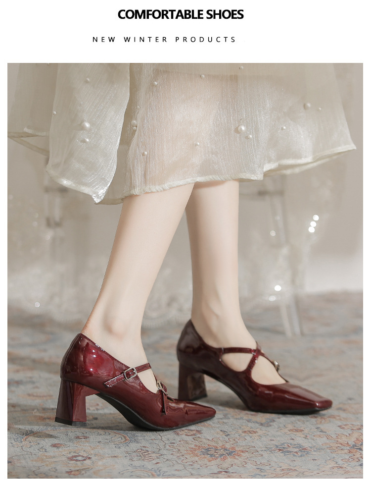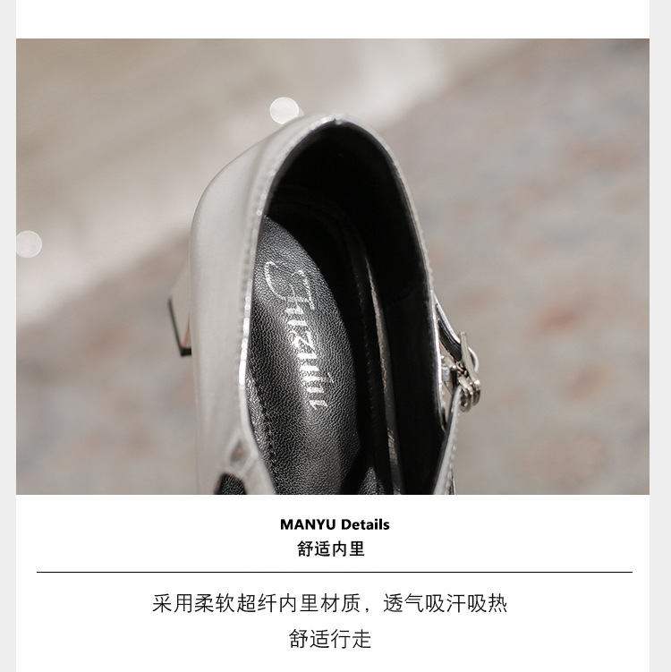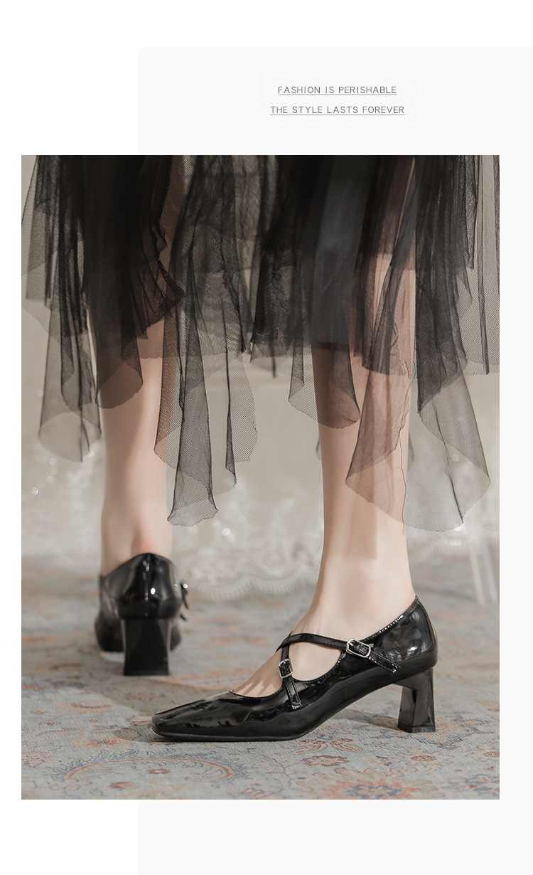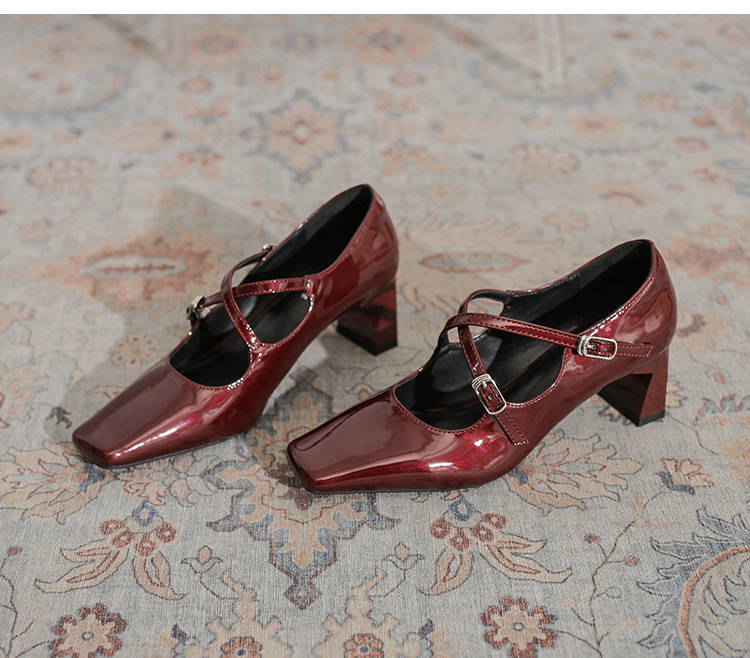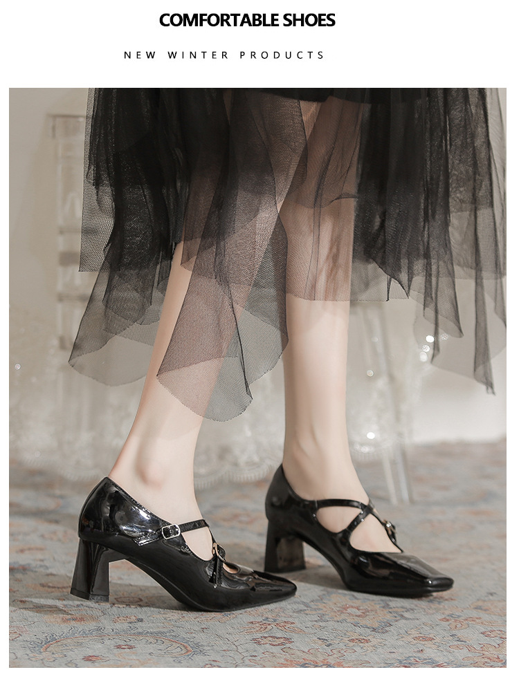 6368-3 크로스 버클 뉴 메리 제인 여성 신발 스퀘어 토 레트로 실버 두꺼운 힐 얕은 입 올 매치 프렌치 싱글 슈즈스토어 가기
