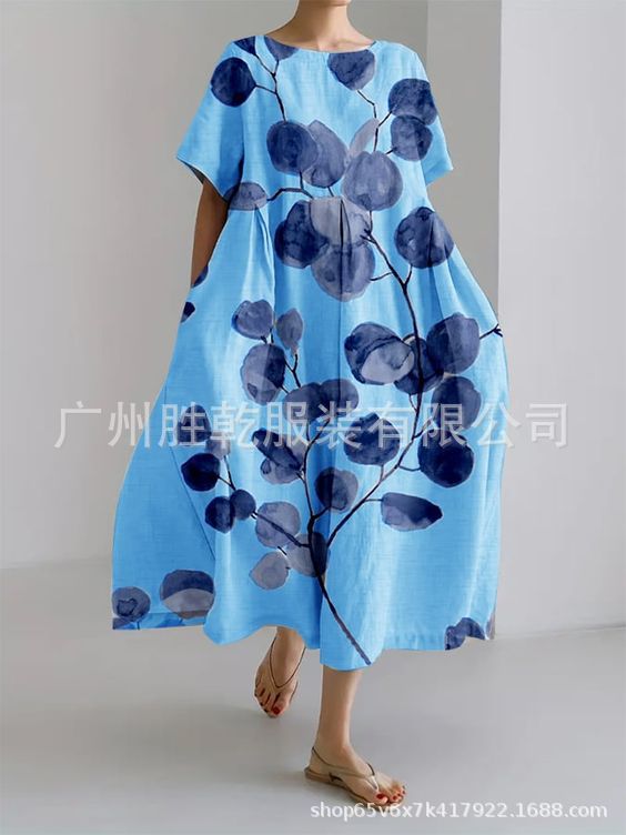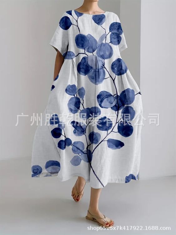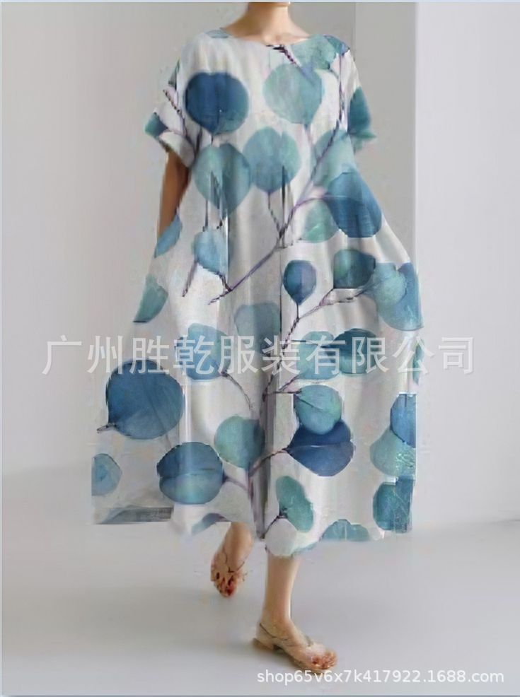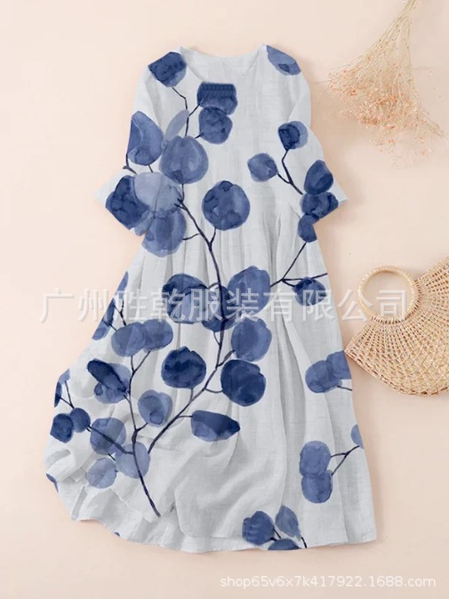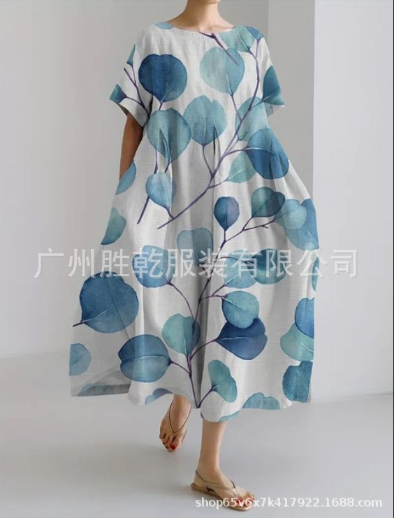2024 국경 전자 상거래 아마존 크루 넥 패션 캐주얼 여성의 새로운 인쇄 Shu Ya 기질 통근 원피스