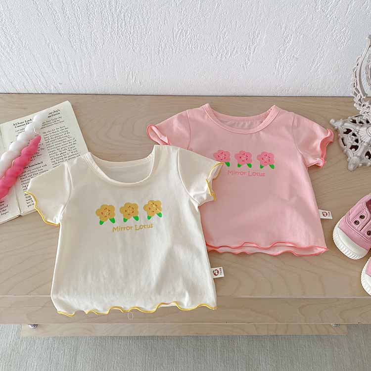 여자 아기 반팔 티셔츠 여름 아기 탑 서양식 여자 티셔츠 반소매 얇은 한 살짜리 신생아 얇은 여름스토어 가기