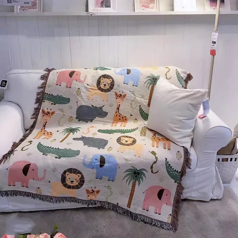 국경 양면 소파 타월 사계절 유니버설 코튼 담요 만화 귀여운 소파 커버 매달린 천 싱글 3 인용 쿠션스토어 가기