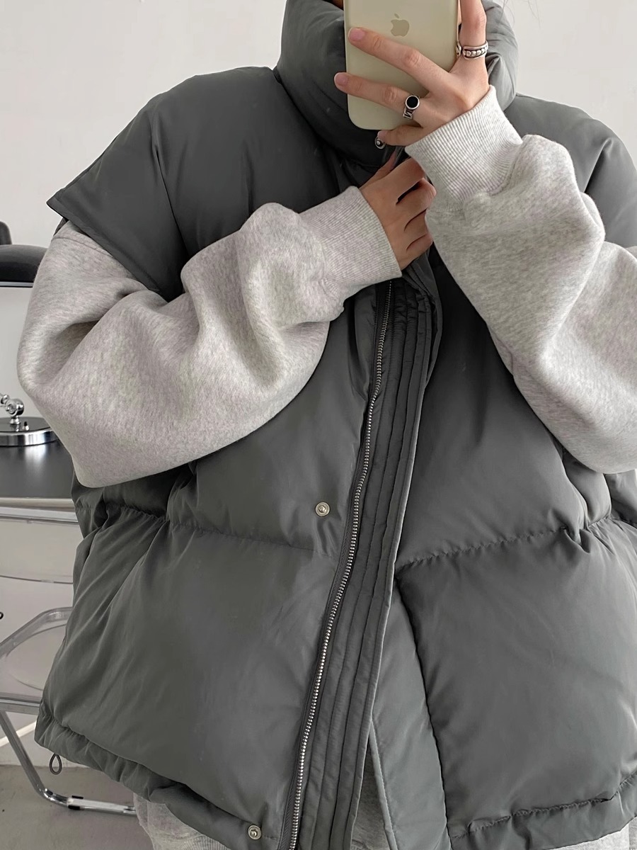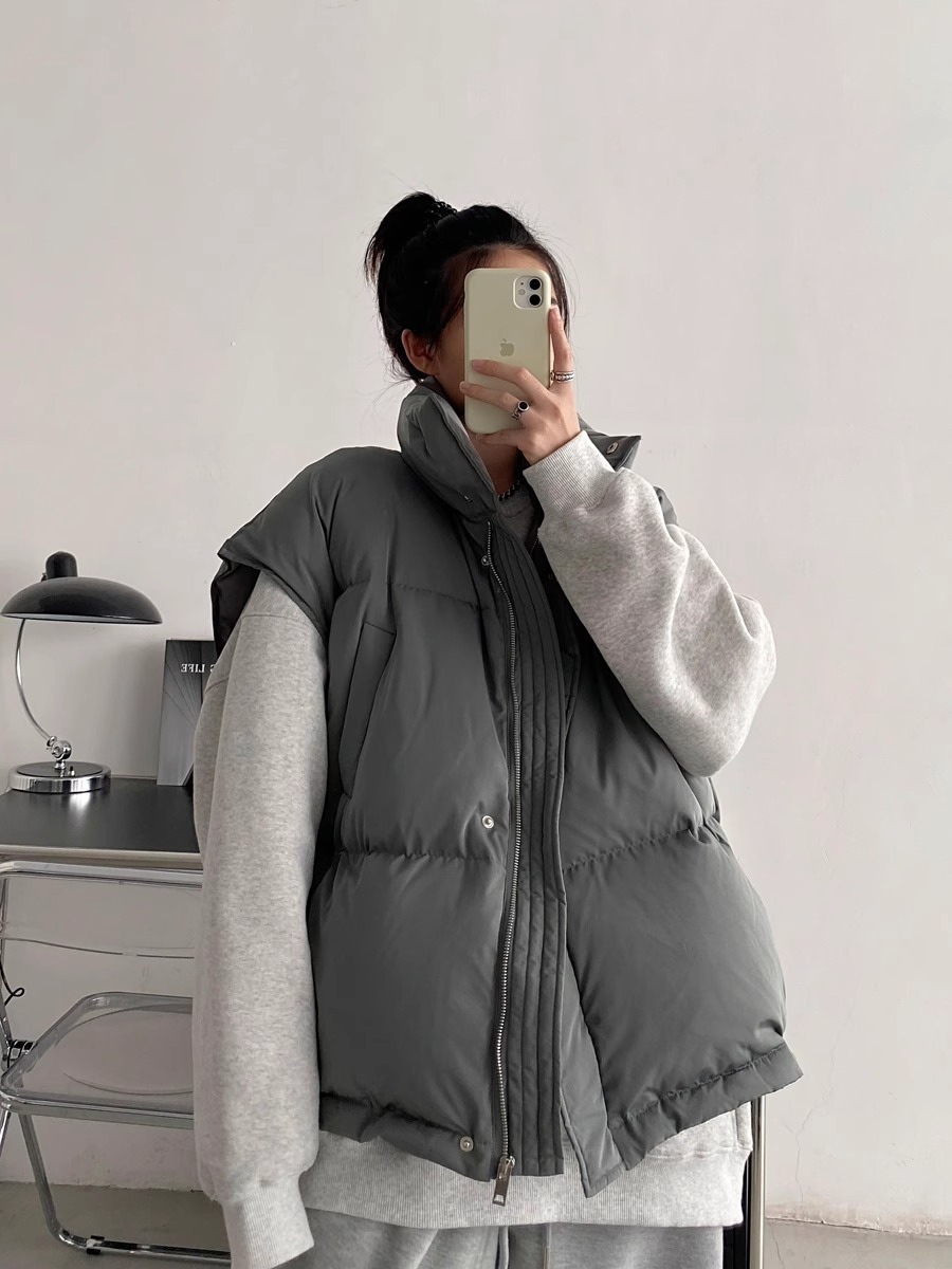 다운 코튼 조끼 여성의 2024 년 가을과 겨울 새로운 스탠드 칼라가 두껍게 냉장 따뜻한 두꺼운 캐주얼 통근 양복 조끼