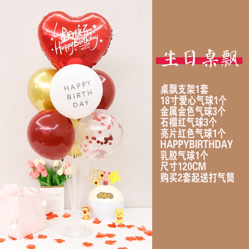 인터넷 빨간 머리 테이블 부동 생일 장식 장면 레이아웃 풍선 어린이 생일 파티 소년과 소녀스토어 가기