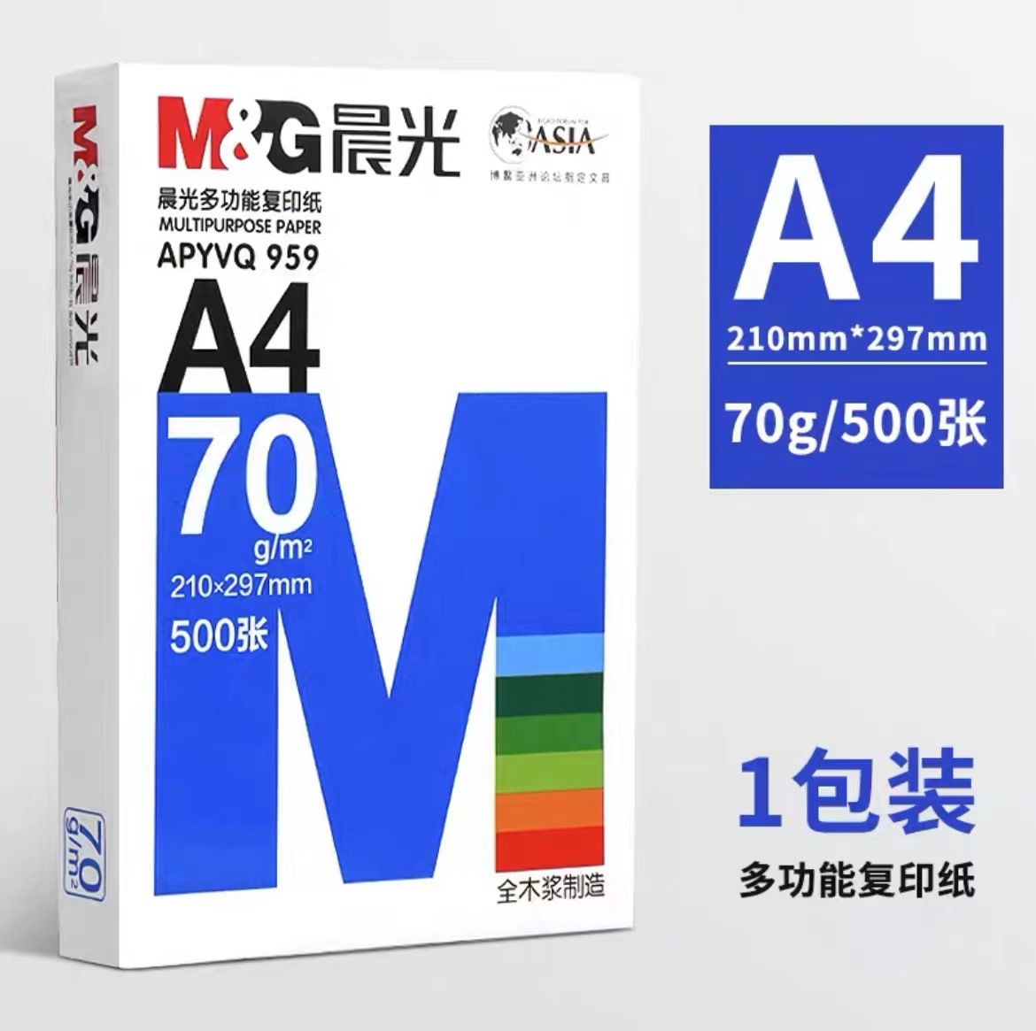 Chenguang A4 복사 용지 인쇄 용지 70g 백서 80g 단일 팩 500 목재 펄프 두꺼운 양면 인쇄 초안 용지