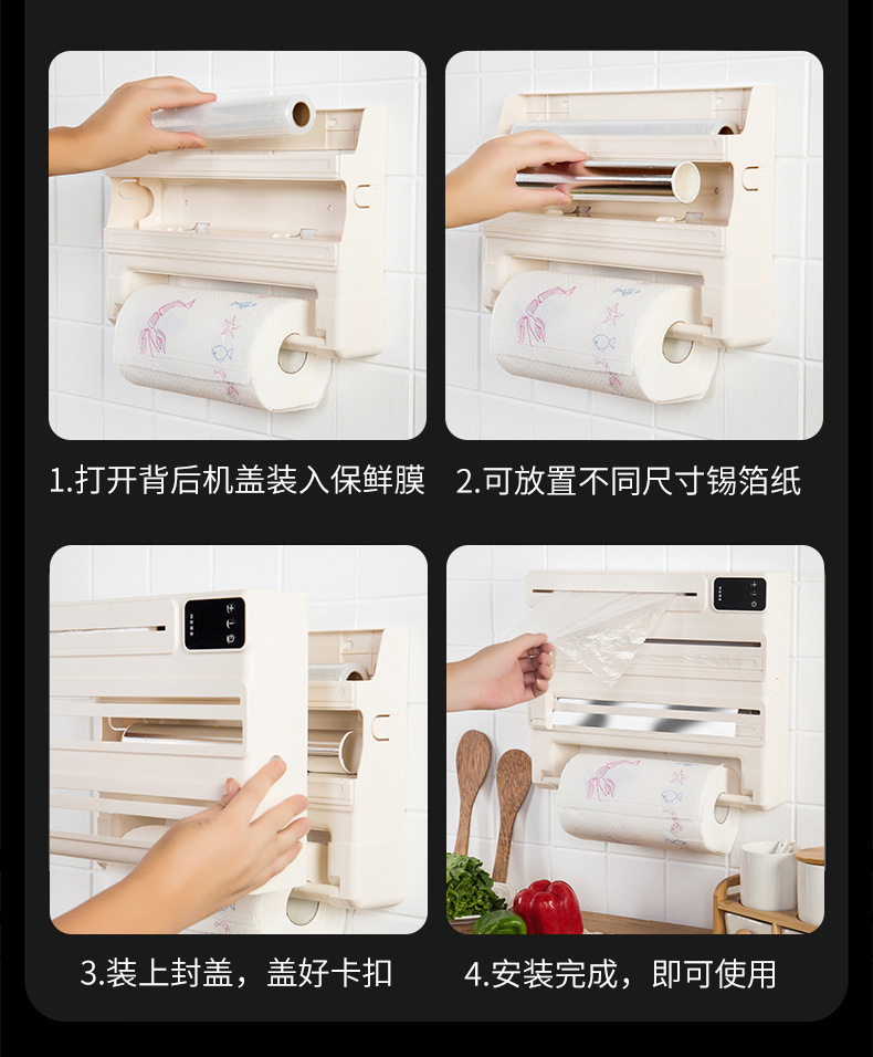• 3세대 플라스틱 랩, 은박지, 커터 보관함, 6-in-1 보관함