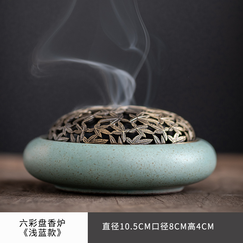 화려한 판향 향로 세라믹 분향소 향 세트 복고풍 백단향 향 실내 분향장치 라인 향 삽입