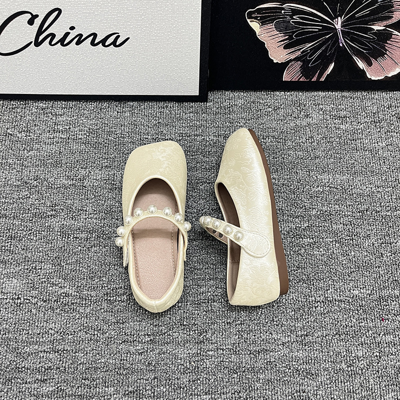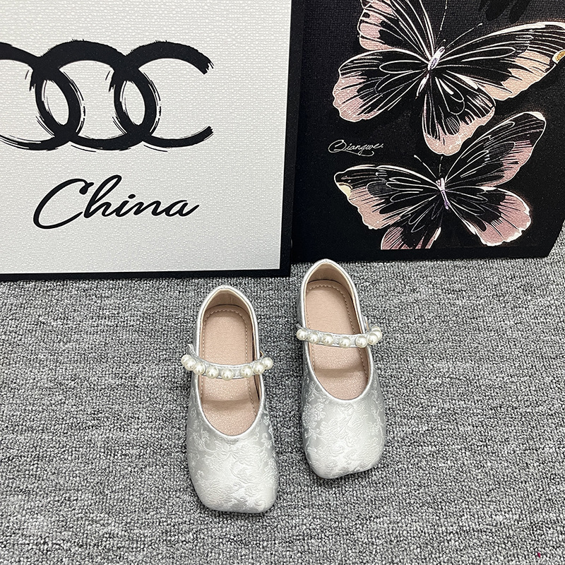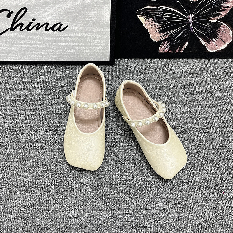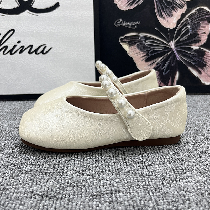 Guofeng Girl's shoes Antique Style 싱글 레이어 신발 일치하는 말 얼굴 스커트 외부 착용 진주 플랫 미끄럼 방지 어린 소녀의 작은 가죽 신발