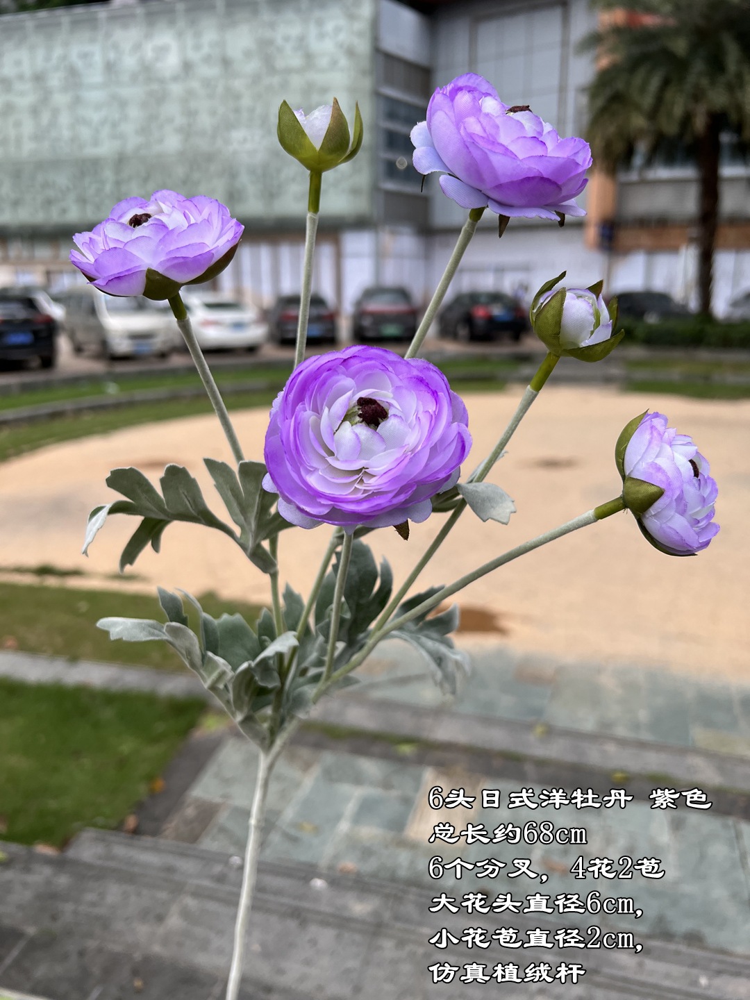 【规格】:整枝长度大约68cm,6个分叉,4花2苞,大花头直径约6cm,小花头直径约2cm,植绒杆子