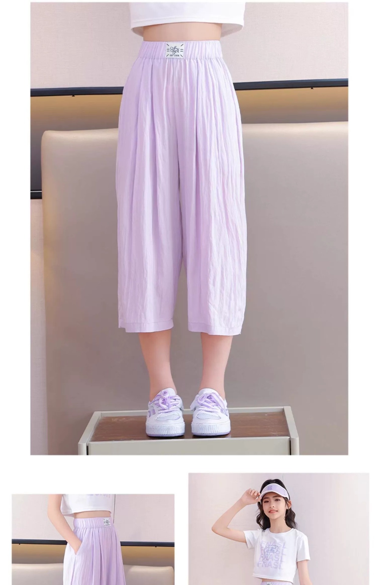 소녀 여름 얇은 자른 바지 2024 여름 새로운 도착 중다 어린이 여름 순면 얇은 자른 바지스토어 가기
