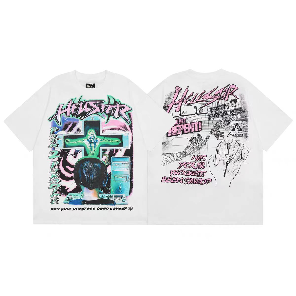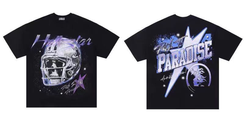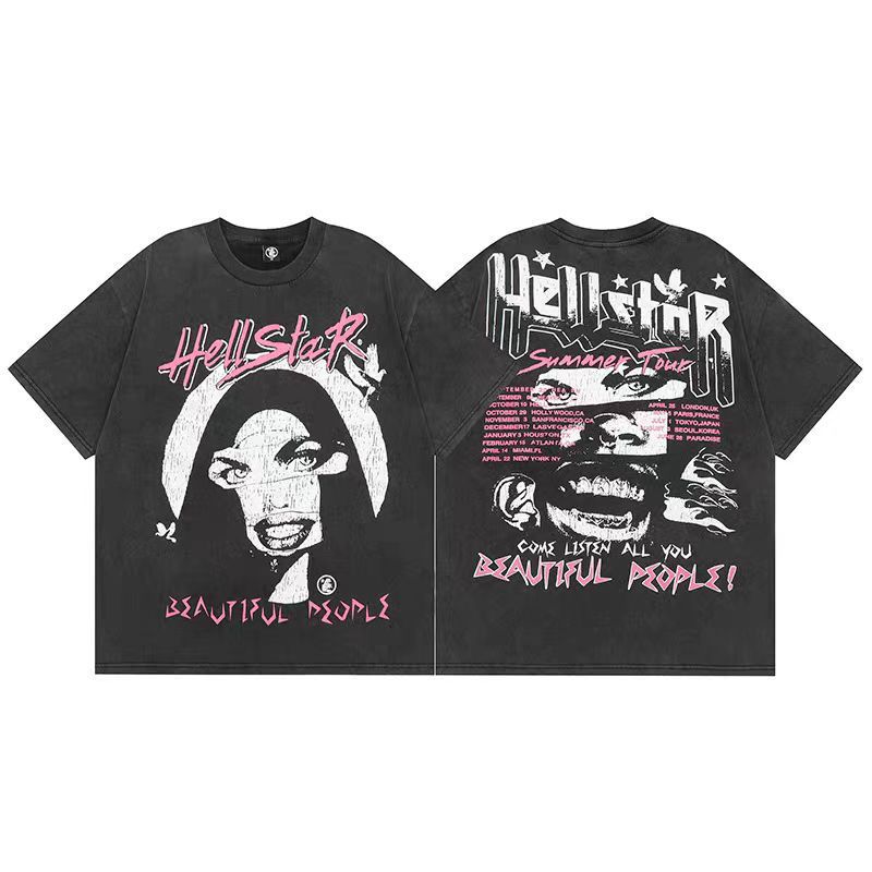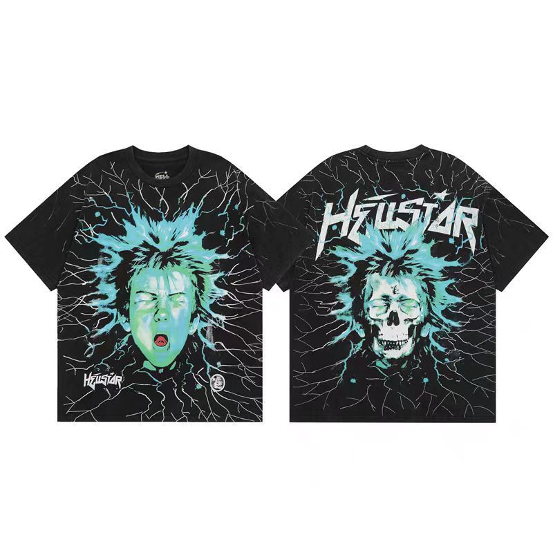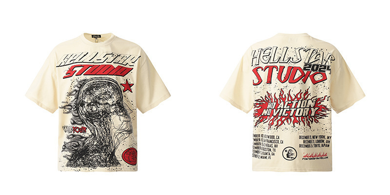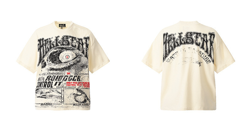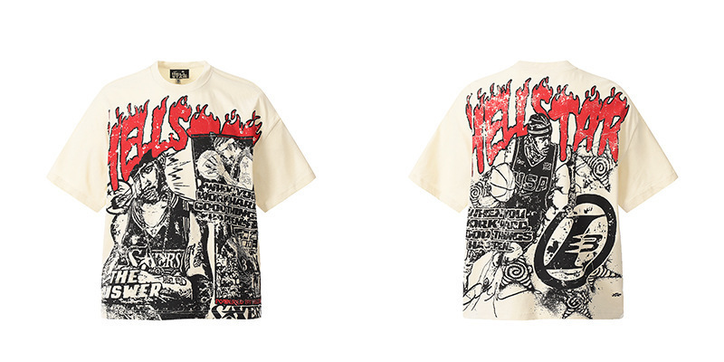 아마존 트렌디 브랜드 힙합 프린트 루즈핏 라운드넥 티셔츠 남성용 레트로 스타일 캐주얼 반팔 면 티셔츠스토어 가기