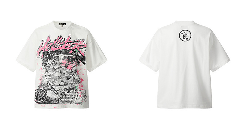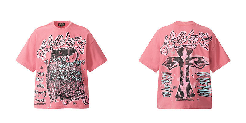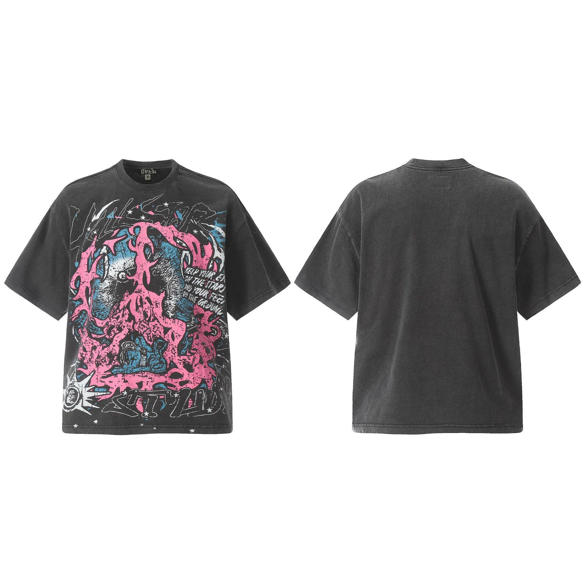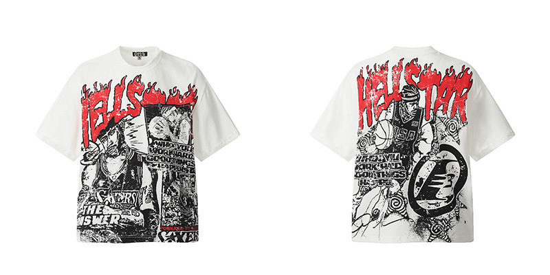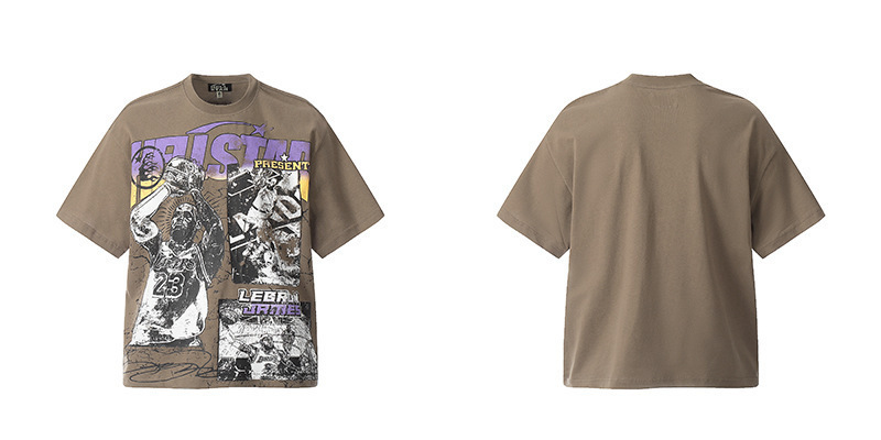 아마존 트렌디 브랜드 힙합 프린트 루즈핏 라운드넥 티셔츠 남성용 레트로 스타일 캐주얼 반팔 면 티셔츠