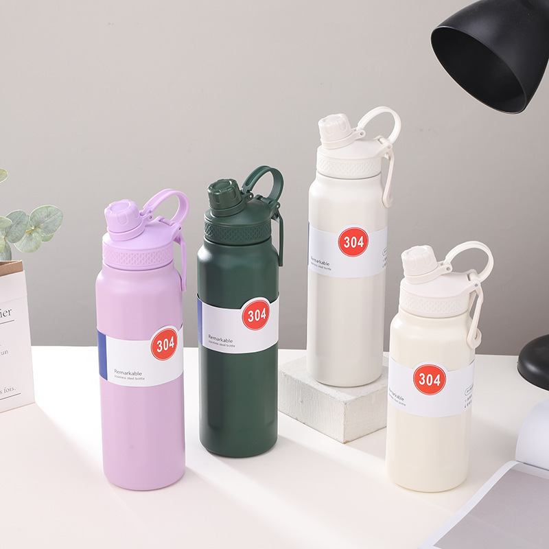 국경 새로운 304 스테인레스 스틸 스포츠 주전자 야외 대용량 손잡이 등산 냄비 휴대용 진공 보온병 컵