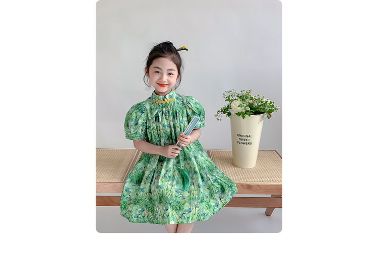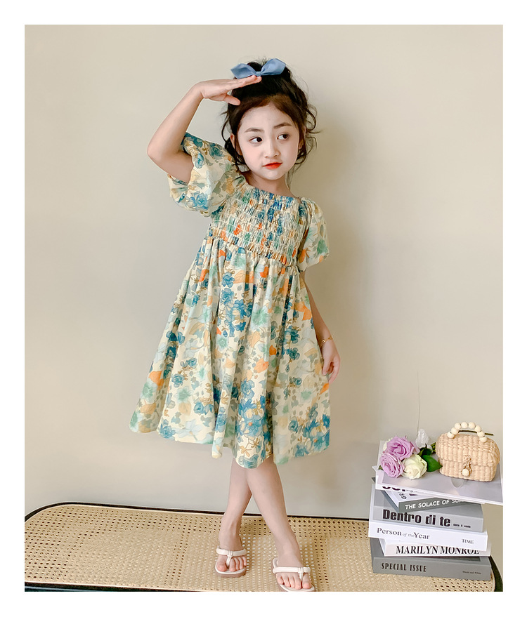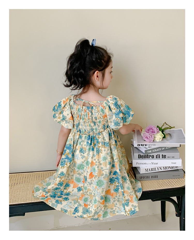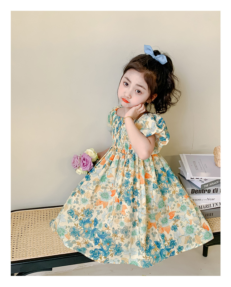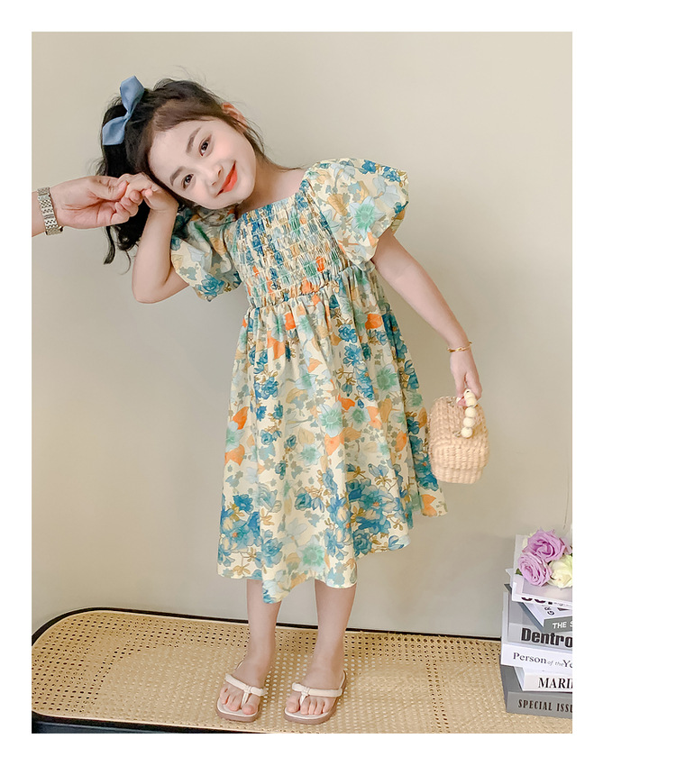 소녀 여름 원피스 2024 새로운 어린이 스타일 코튼 원피스 여름 소녀 꽃 거품 소매 공주 원피스스토어 가기