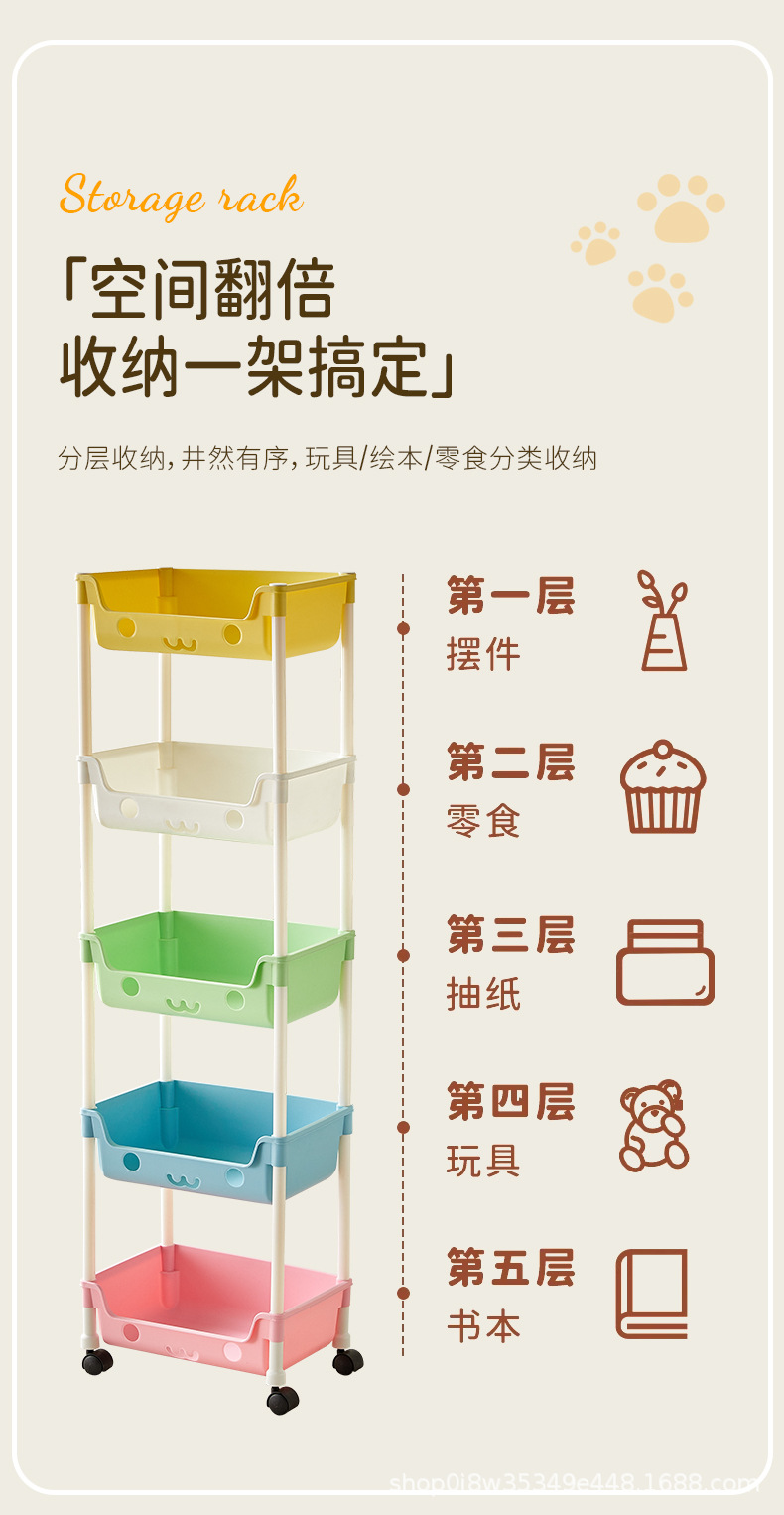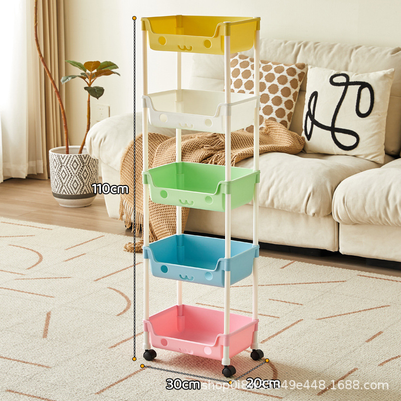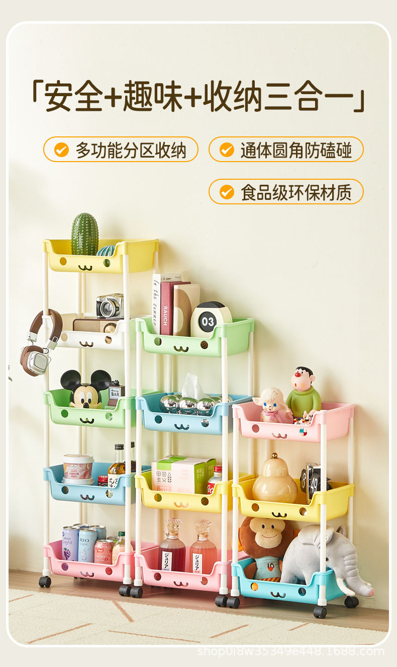 (공장) 다층 마카롱 어린이 수납 선반 바퀴가 달린 이동식 수납 선반 그림책 스낵 선반