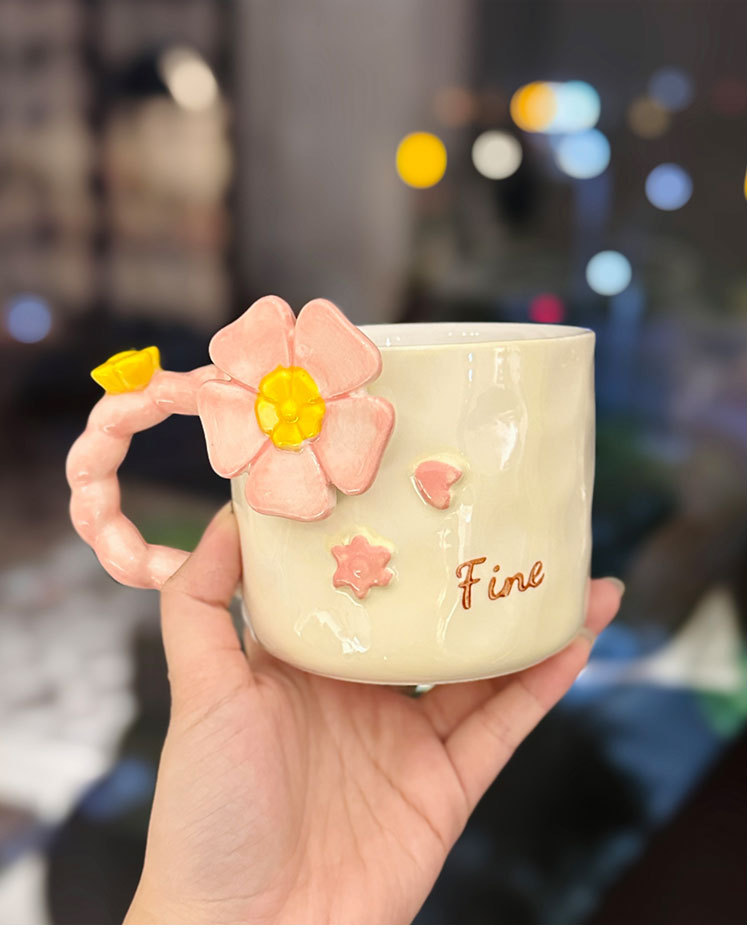 소녀의 높은 가치의 세라믹 꽃 찻잔 핑크 소녀의 심장 커플의 물 컵 가정용 세라믹 컵 동반 선물스토어 가기