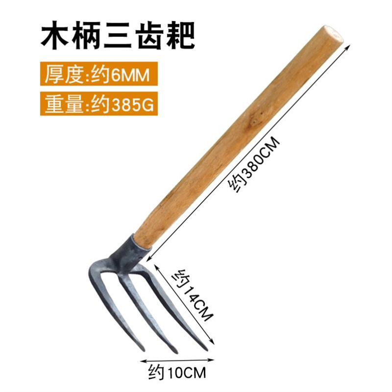 • 나무 손잡이 + 50cm 막대가 있는 작은 두 개의 이빨 괭이
