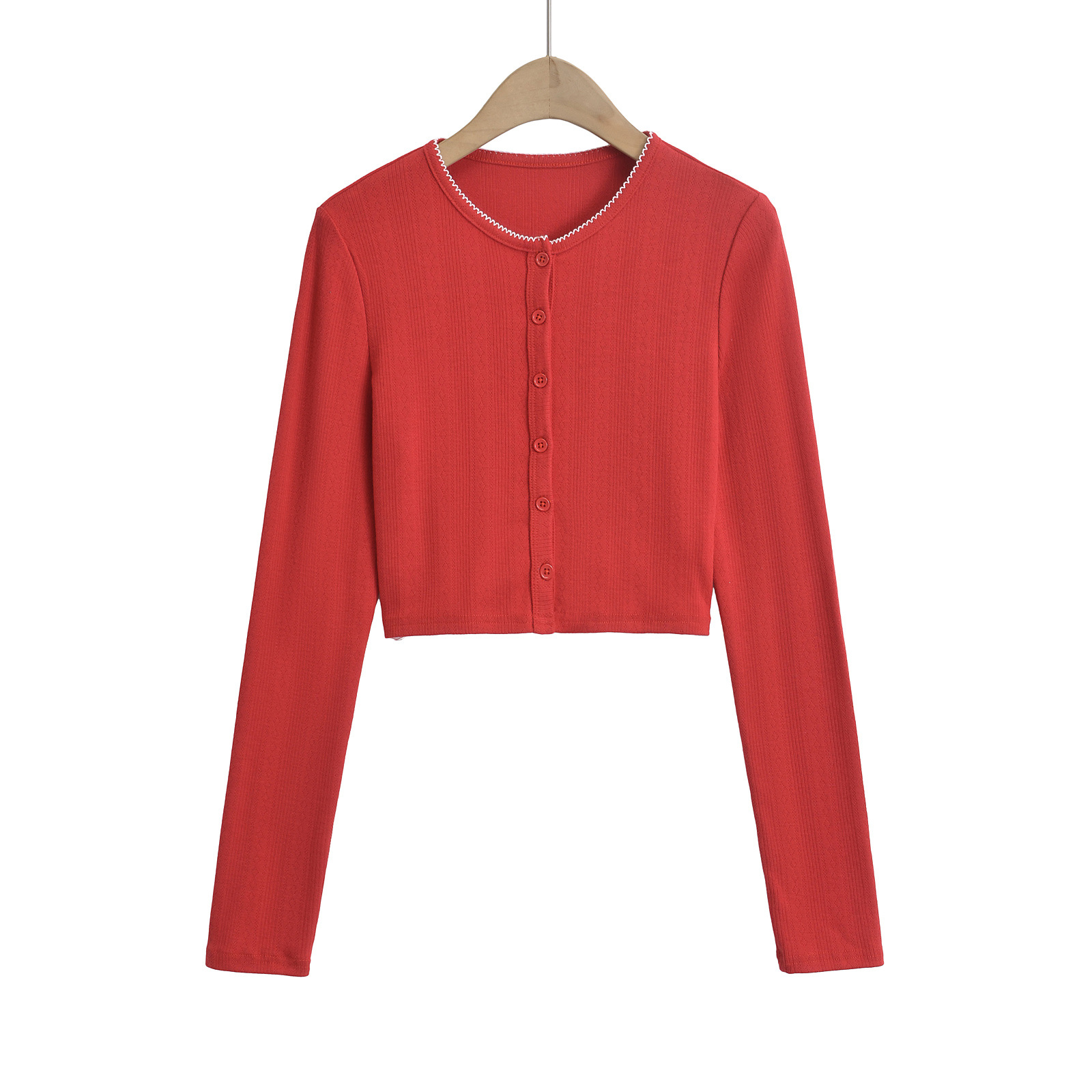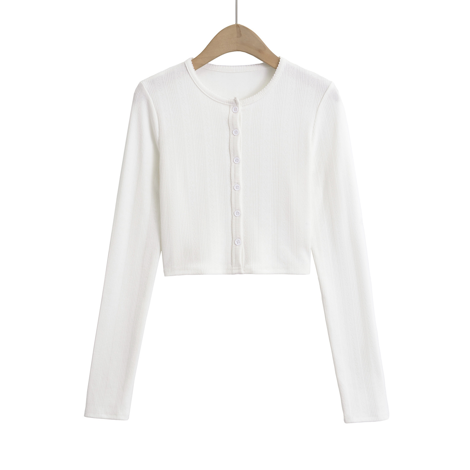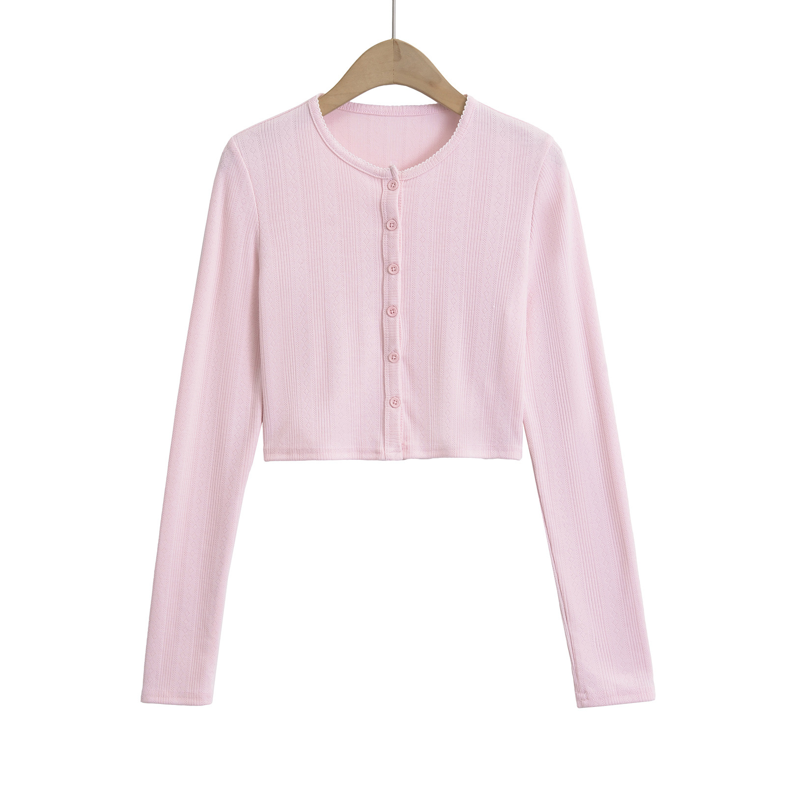 DS24118-24 여름 새로운 유럽과 미국 스타일 6 곡물 버클 이빨 둥근 목 긴팔 캐주얼 짧은 니트 카디건스토어 가기