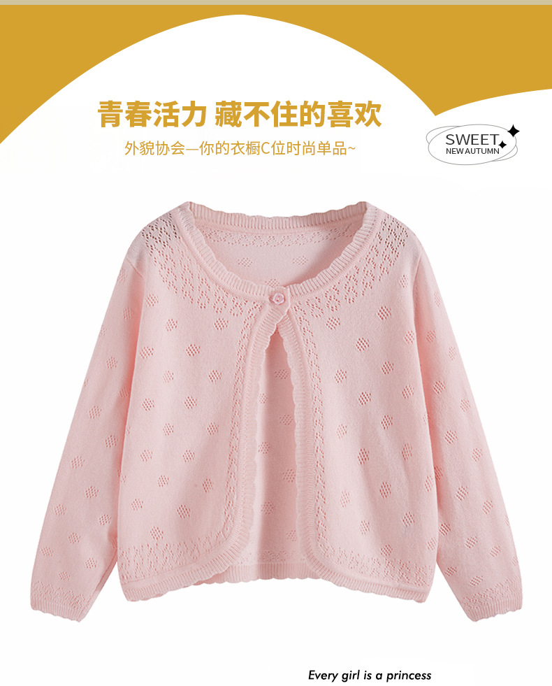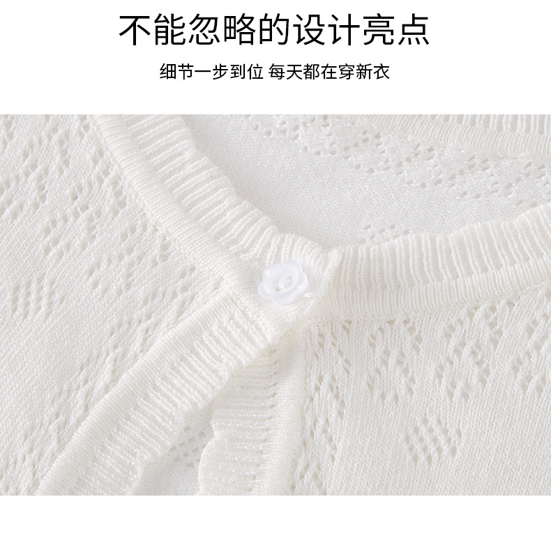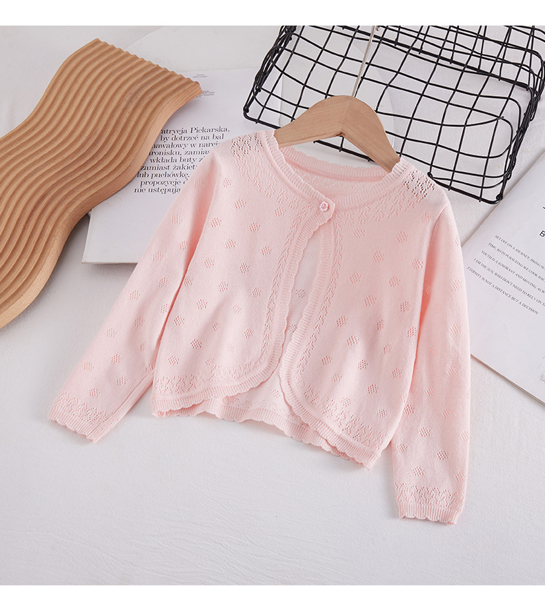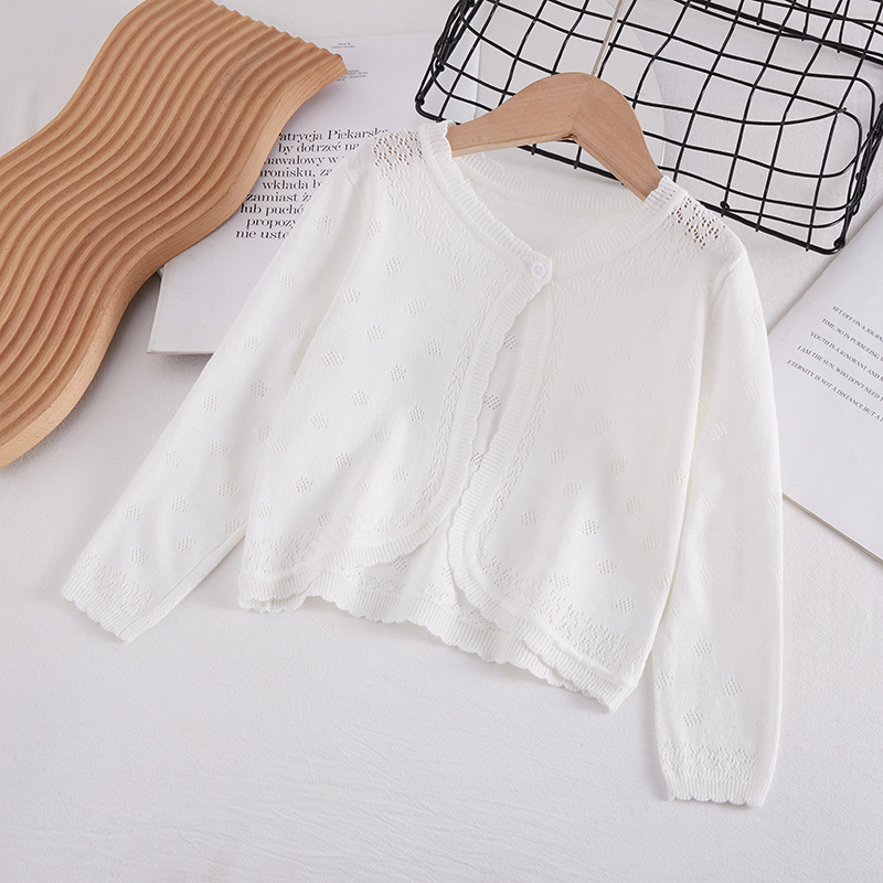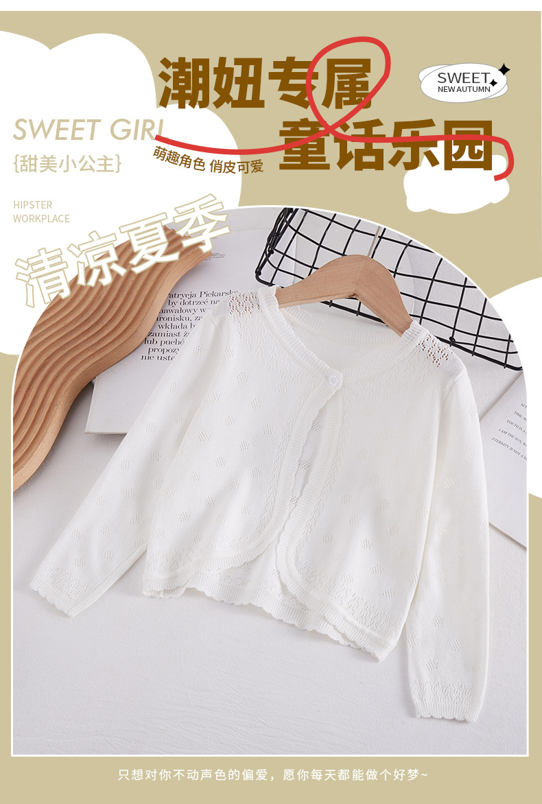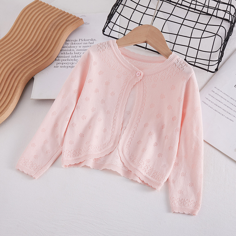 소녀 니트 카디건 2024 새로운 순수 코튼 에어컨 셔츠 외부 착용 어린이 코트 공주 목도리 봄과 여름 선 스크린 옷스토어 가기