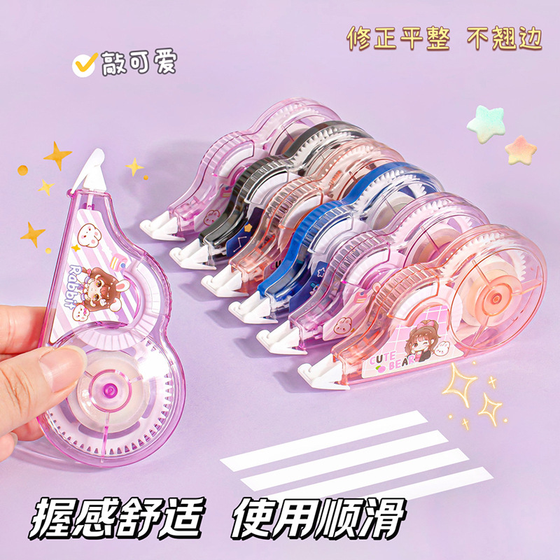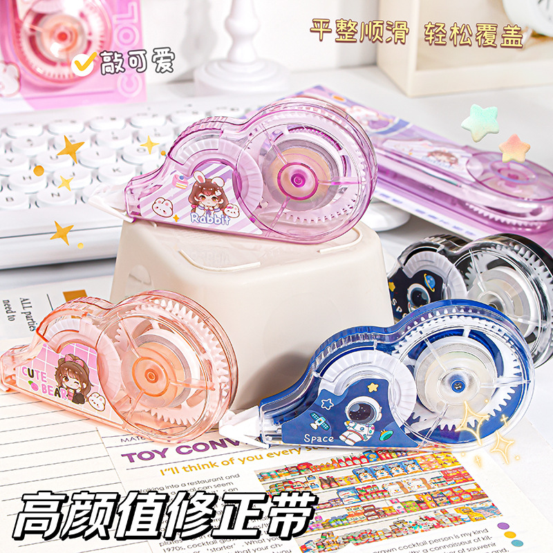 새로운 만화 창조적 인 교정 테이프 대용량 귀여운 소녀 학생 교정 테이프 투명 교정 테이프 학습 문구