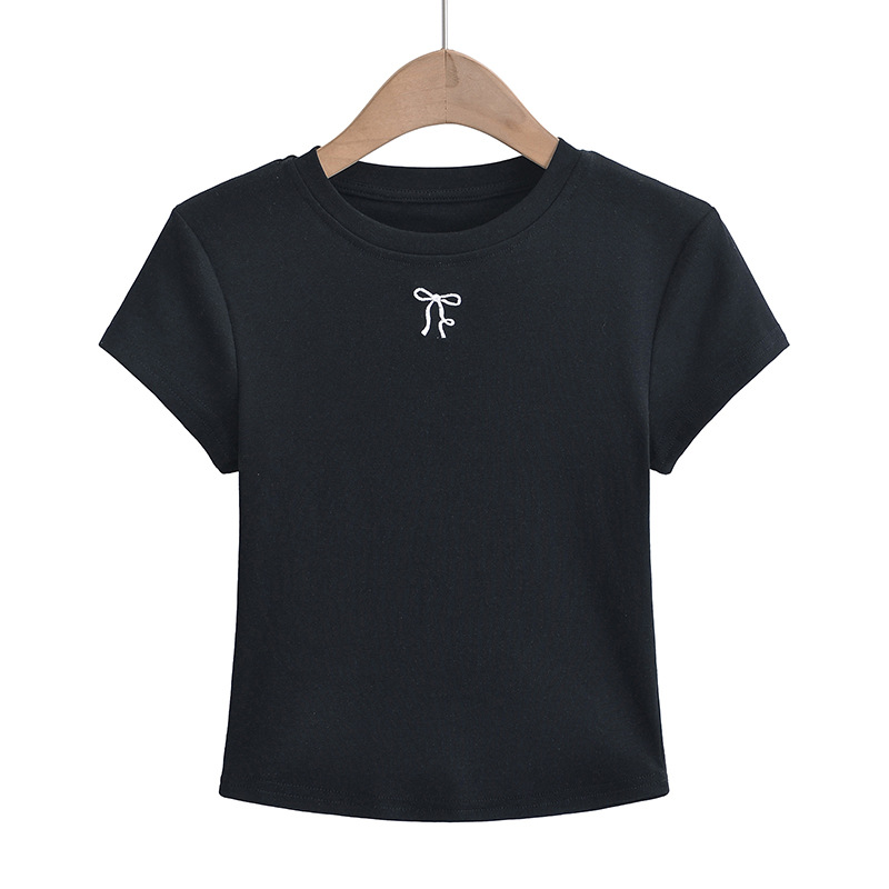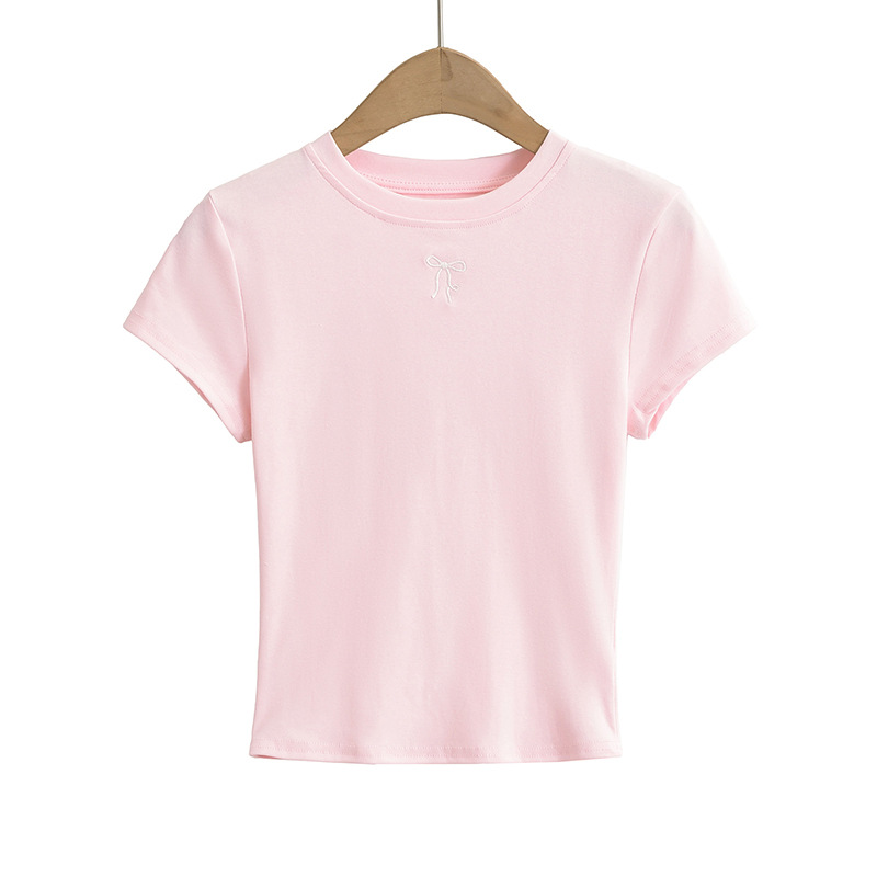 AP24187-24 여름 새로운 유럽과 미국 스타일 자수 작은 둥근 목 짧은 소매 티셔츠 뜨거운 드릴링 더미 허리 반바지 세트