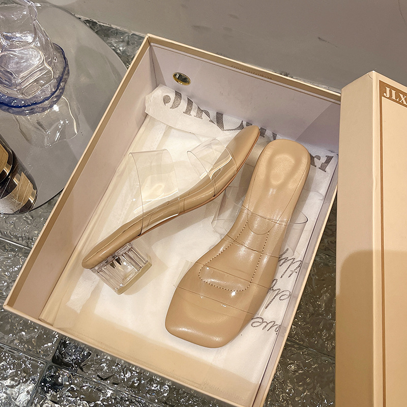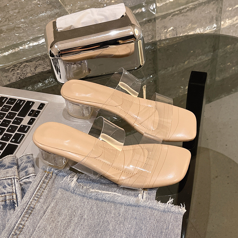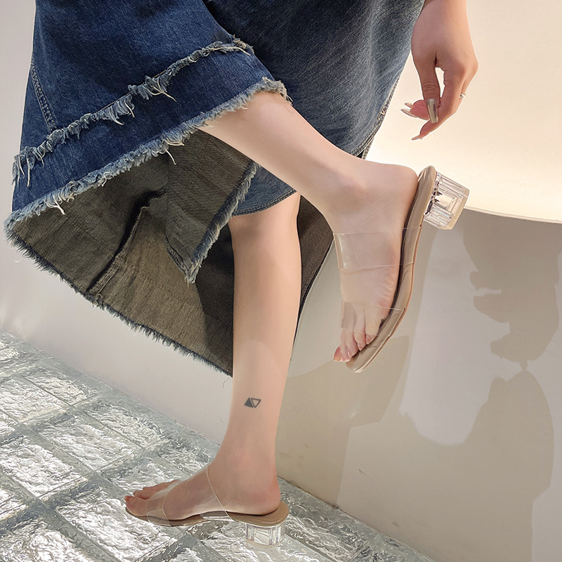 여성용 투명 샌들 2025 여름 신상품 크리스탈 힐 하이힐 외출용 비치 샌들 도매
