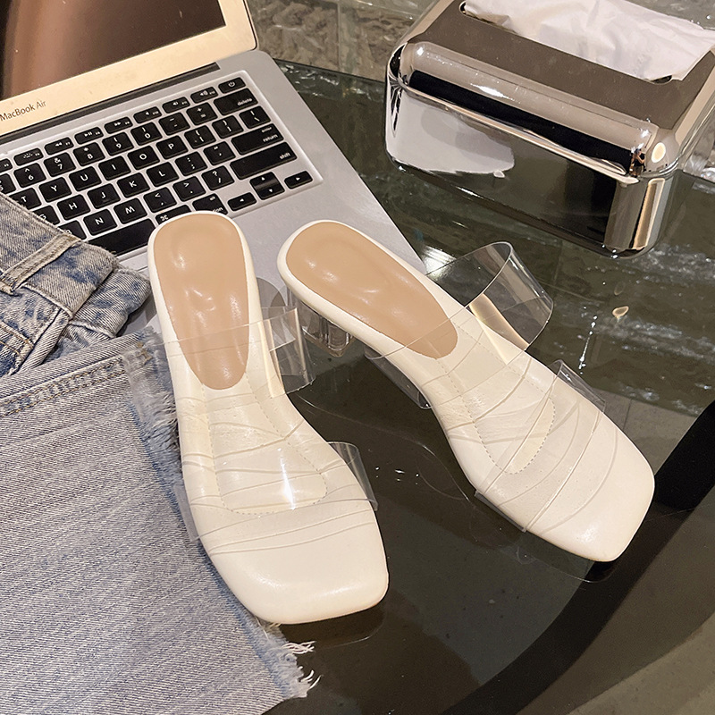 여성용 투명 샌들 2025 여름 신상품 크리스탈 힐 하이힐 외출용 비치 샌들 도매스토어 가기