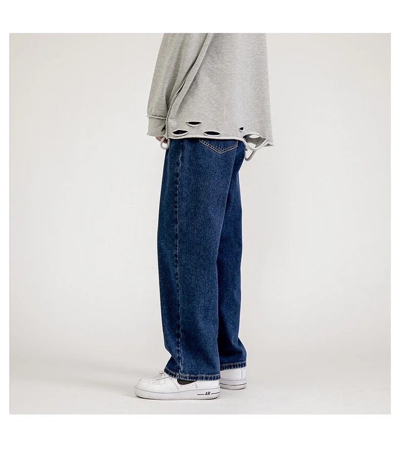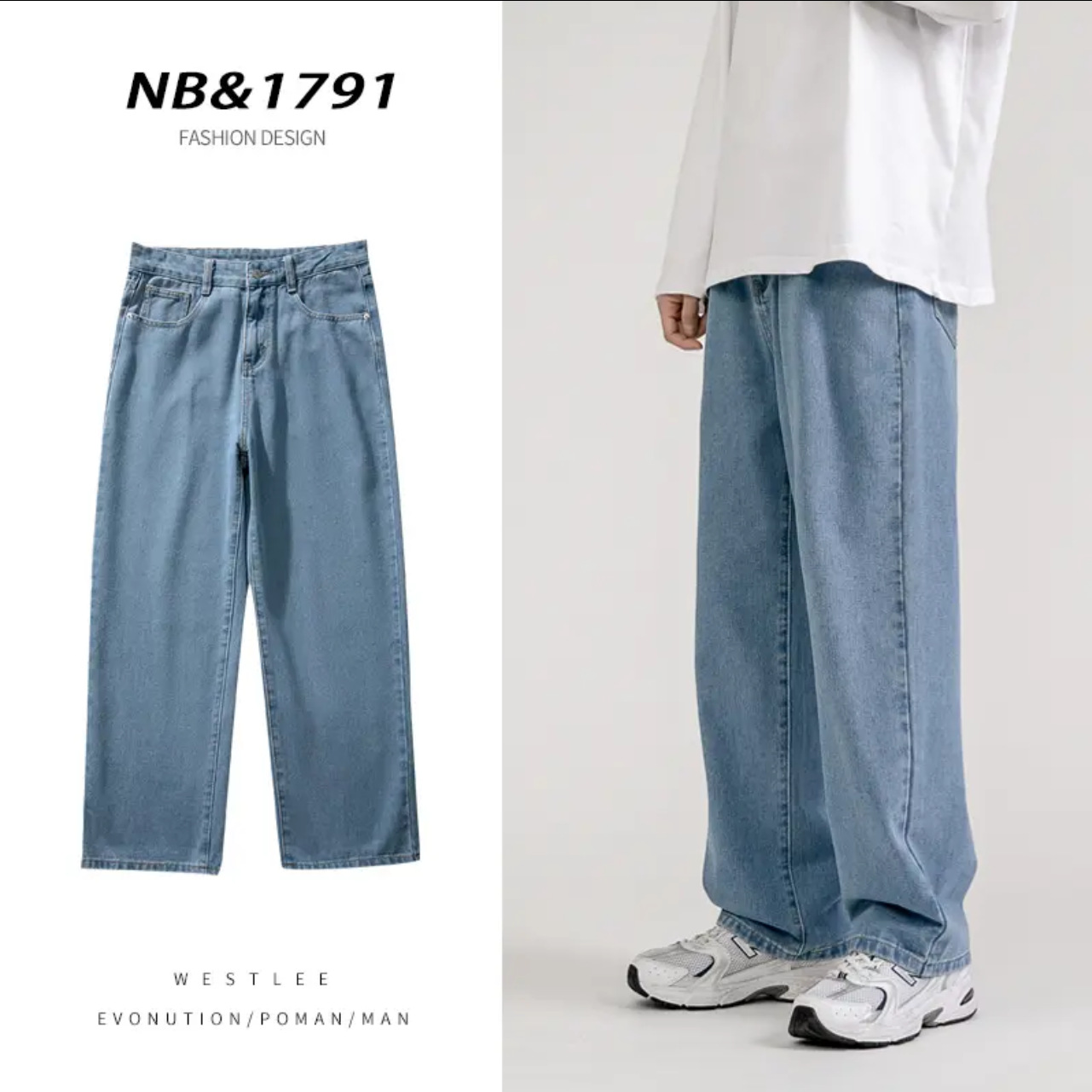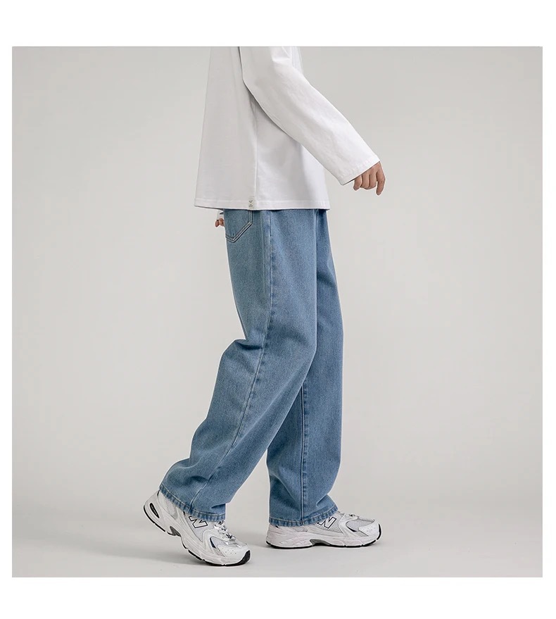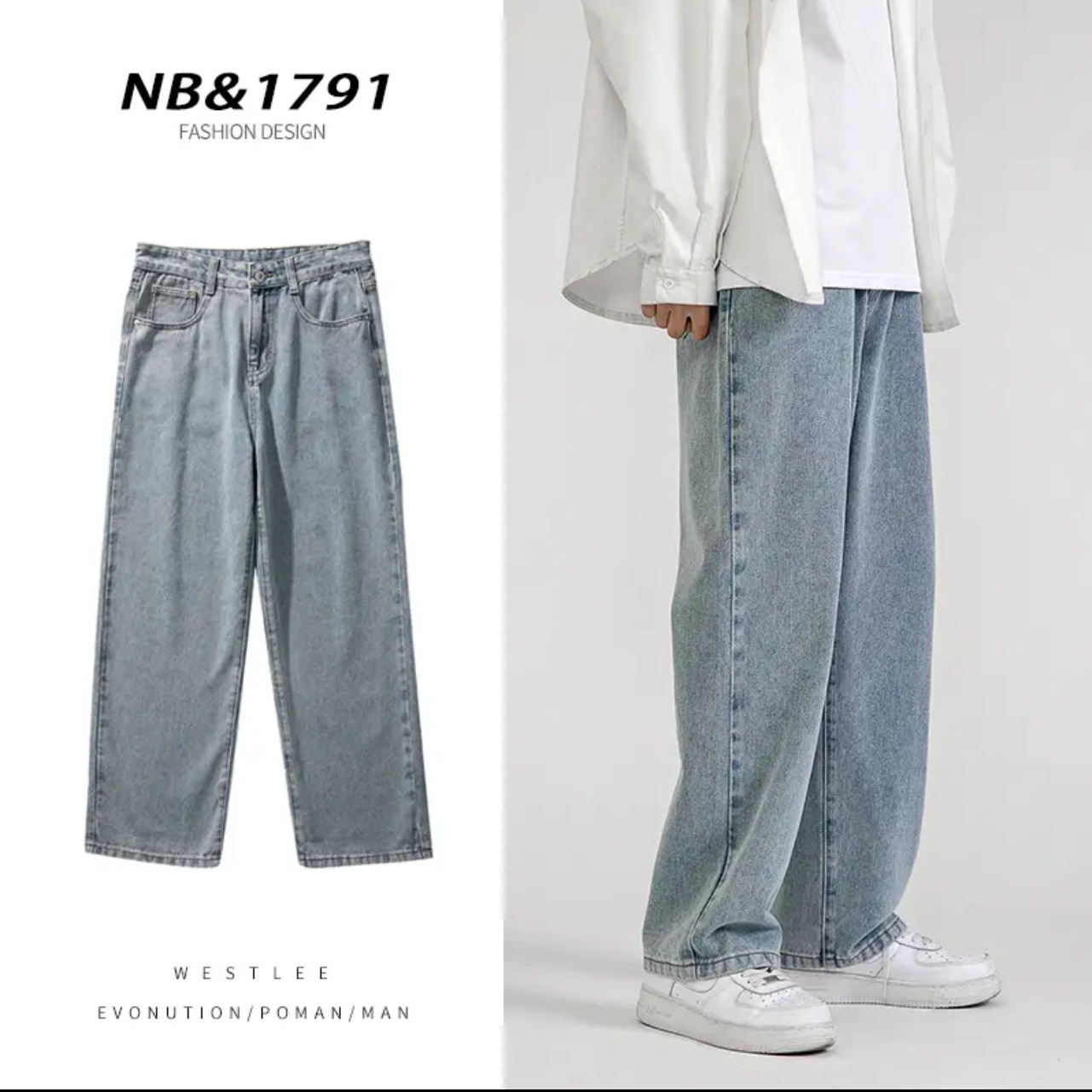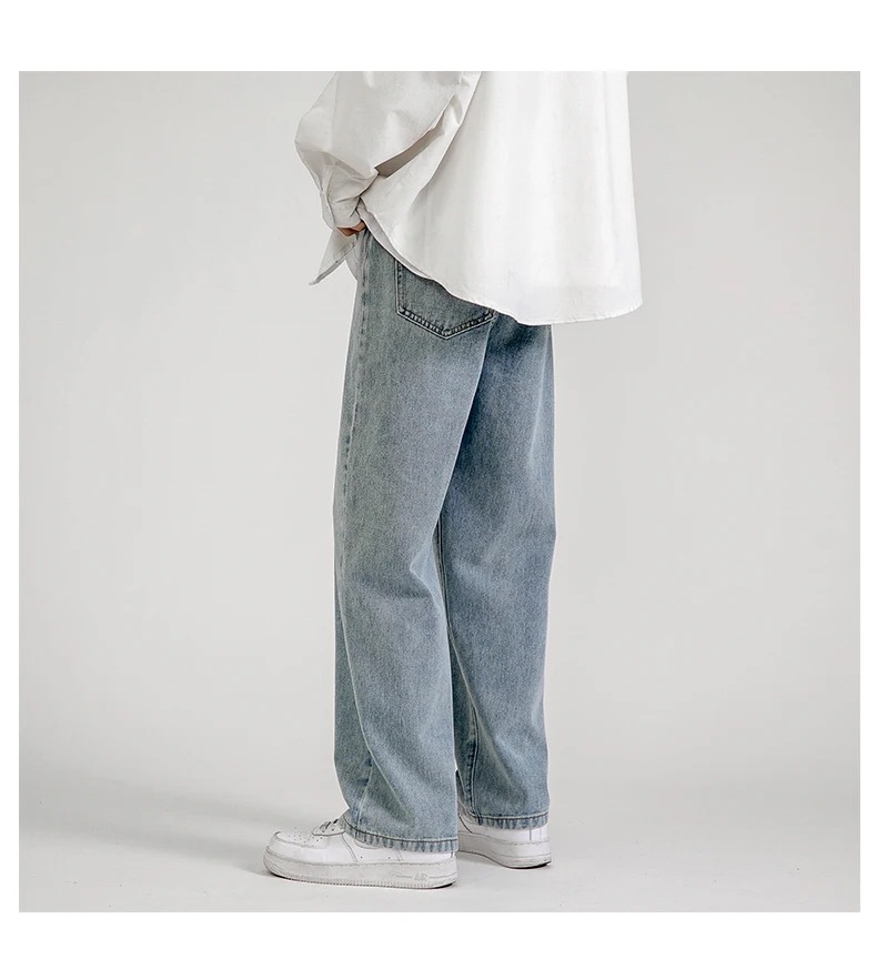 미국 복고풍 패션 트렌디 남성 청바지 디자인 센스 틈새 여름 새로운 느슨한 넓은 다리 올매치 스트레이트 바지스토어 가기