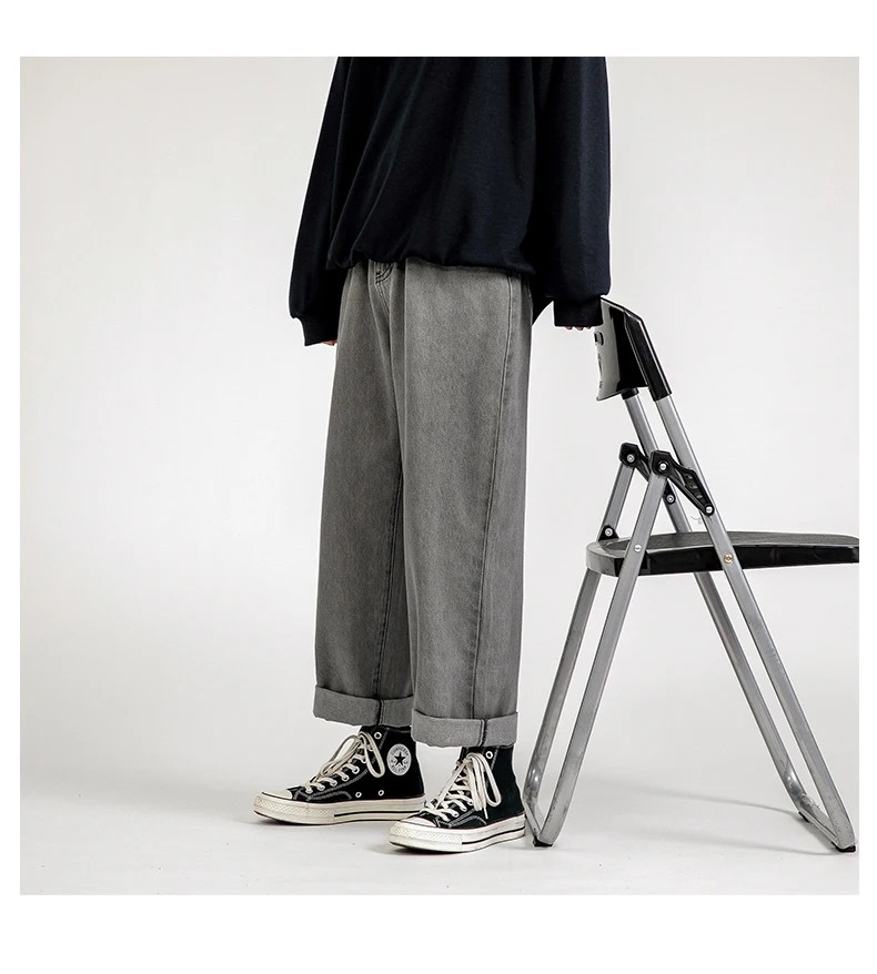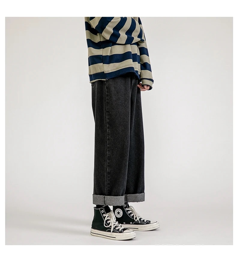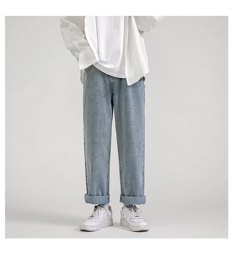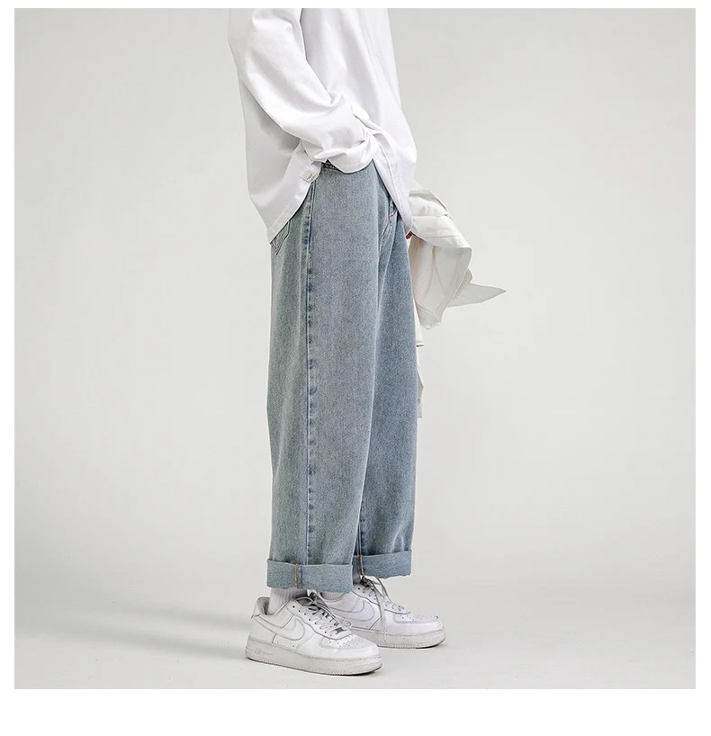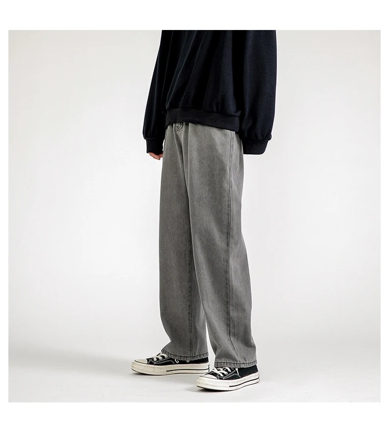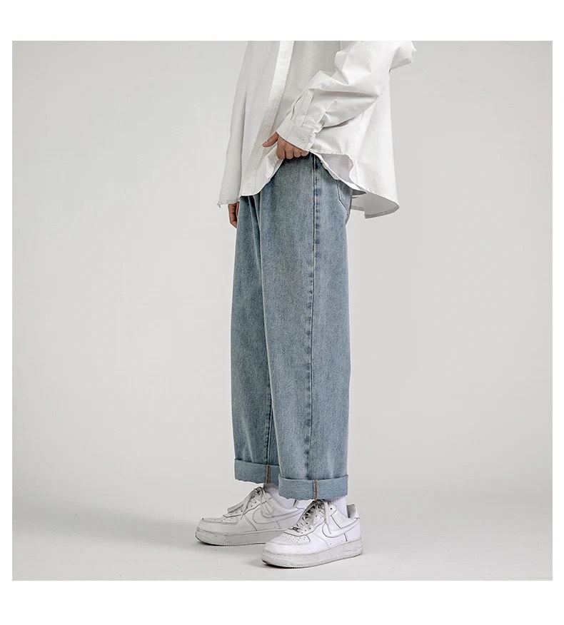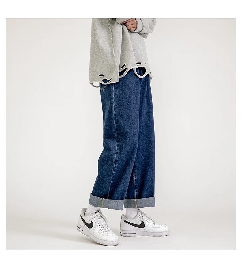미국 복고풍 패션 트렌디 남성 청바지 디자인 센스 틈새 여름 새로운 느슨한 넓은 다리 올매치 스트레이트 바지스토어 가기