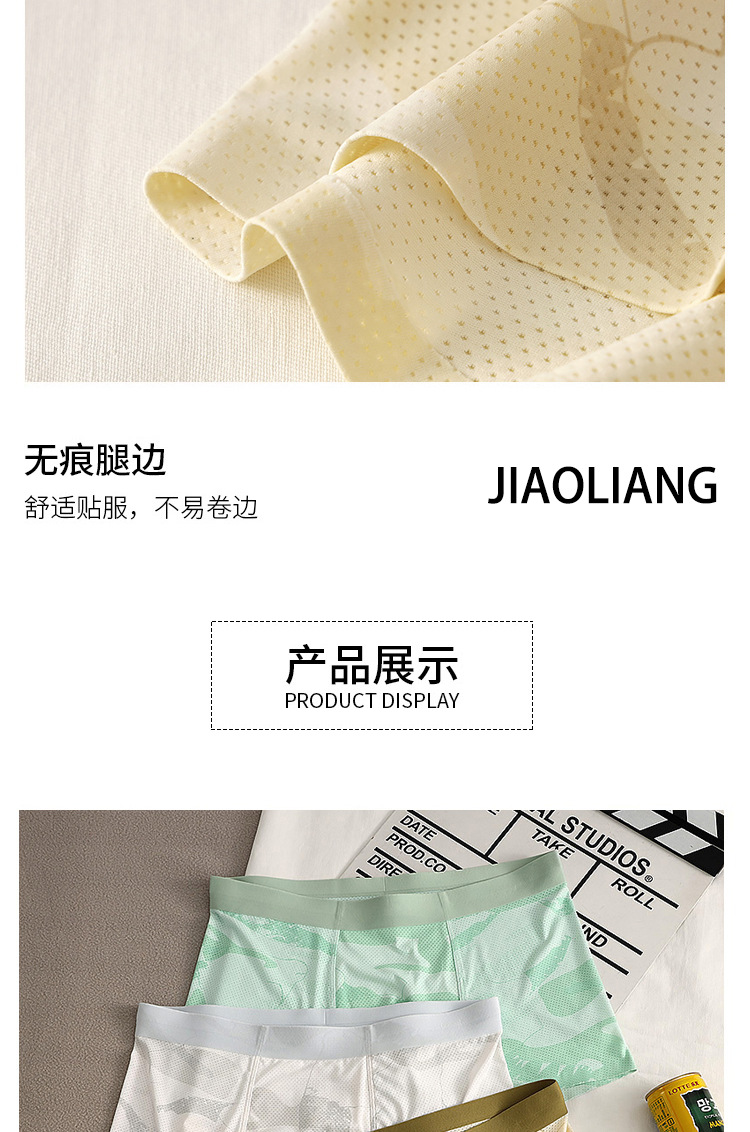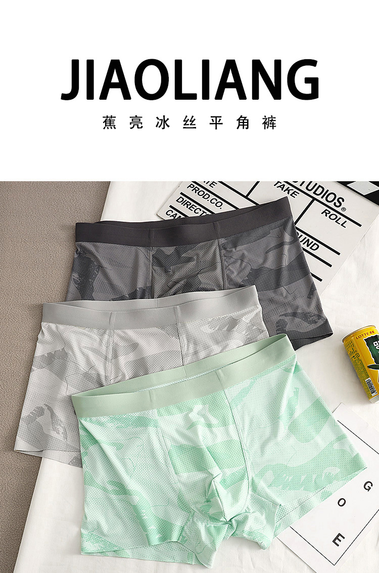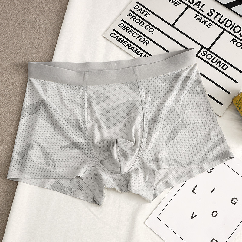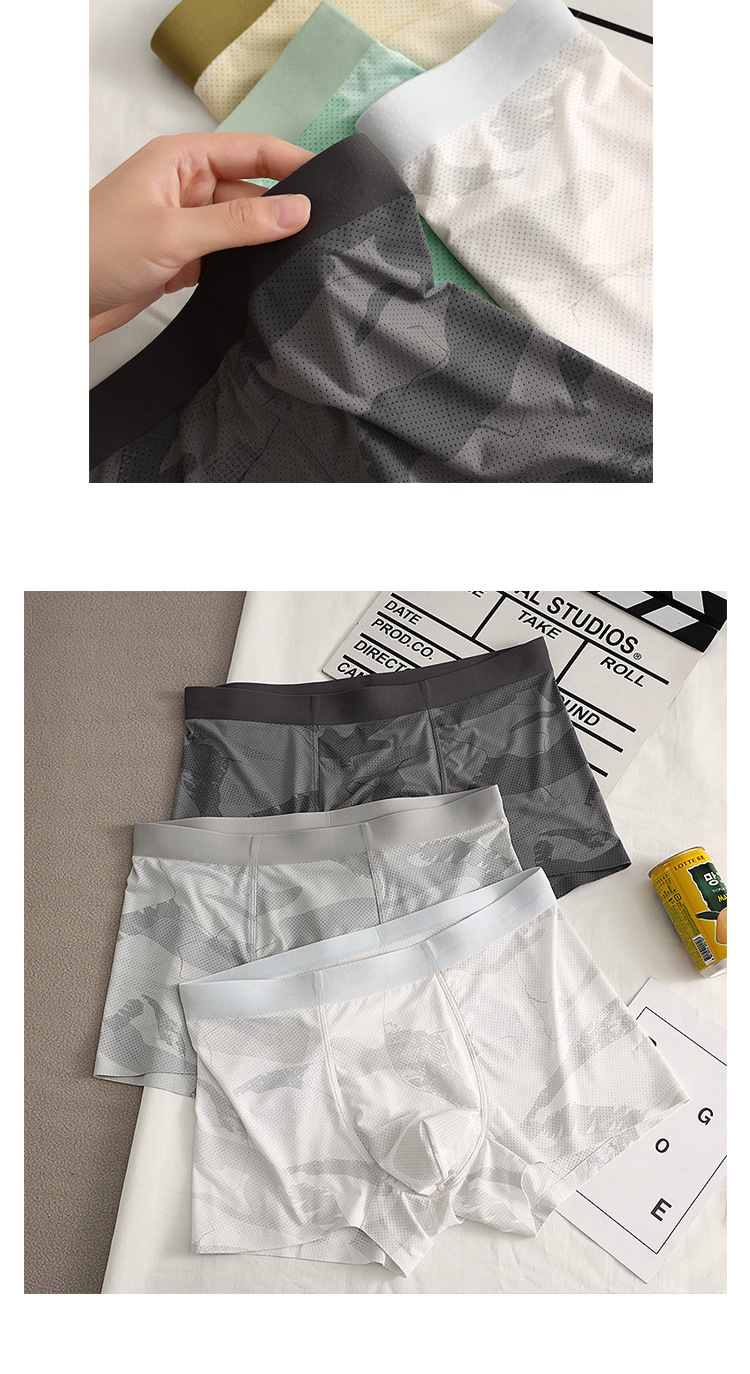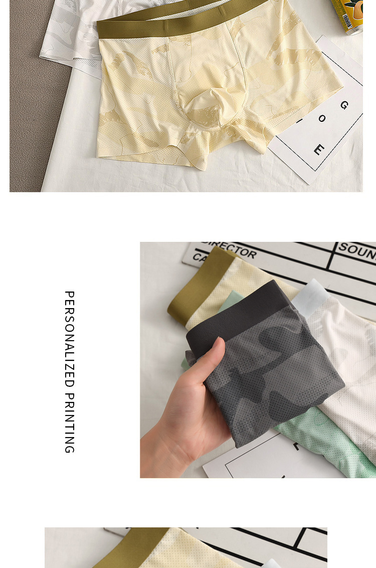 남성 속옷 위장 얼음 실크 통기성 메쉬 복서 팬티 중간 허리 소년 복서 팬티 여름 얇은 반바지스토어 가기