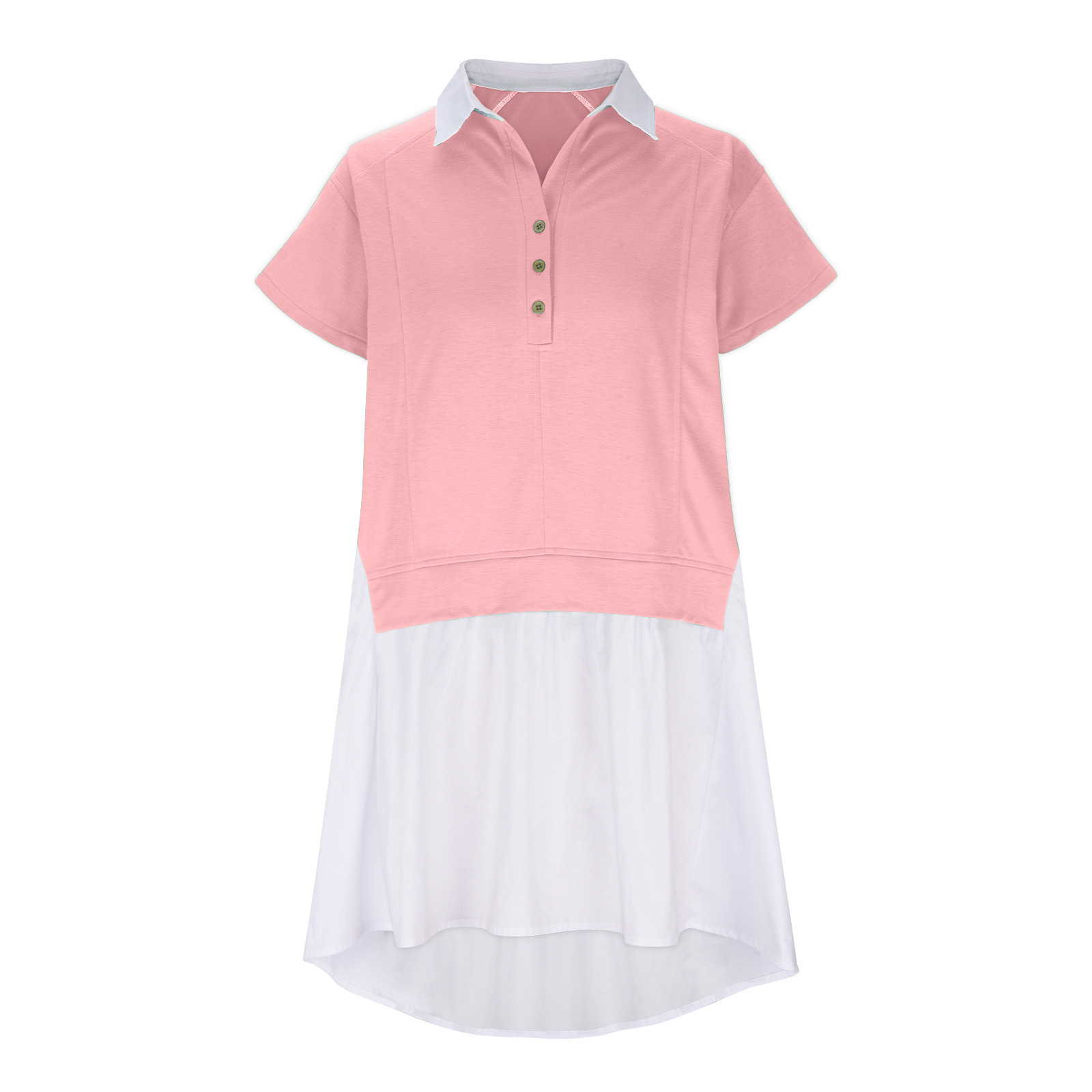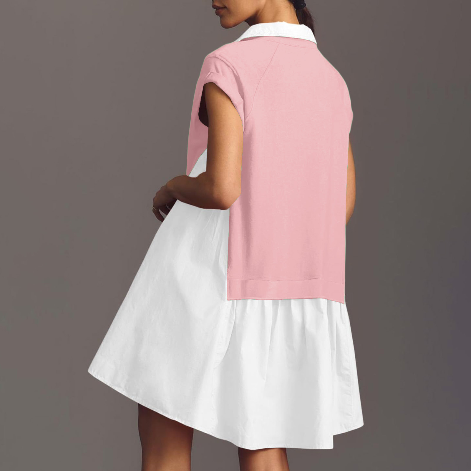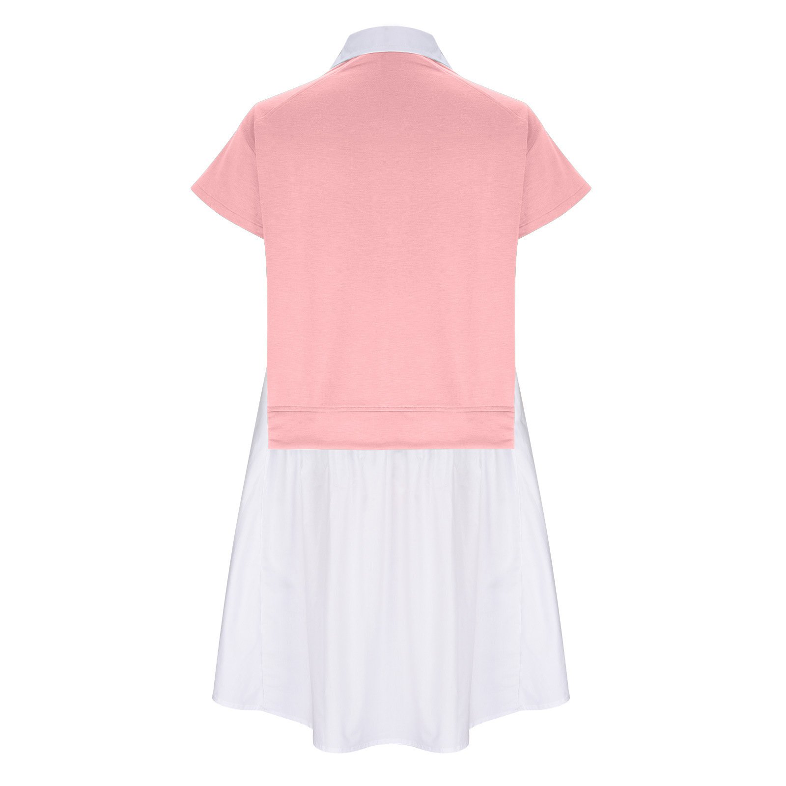 2024 크로스 보더 여성용 컬러 매칭 셔츠 칼라 스웨터 셔츠 셔츠 스티칭 플러스 사이즈 스웨터 스커트 반팔 원피스