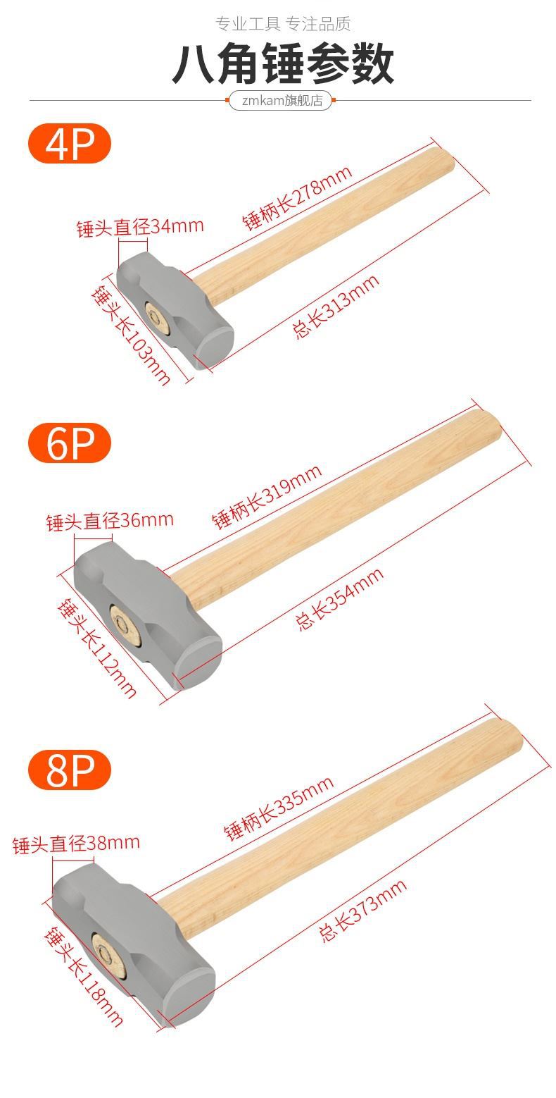 팔각형 해머 스퀘어 헤드 나무 손잡이 무거운 의무 벽 스매싱 벽 철거 해머 다기능 석재 노동자 철 망치 사이트 랭 헤드 도구스토어 가기
