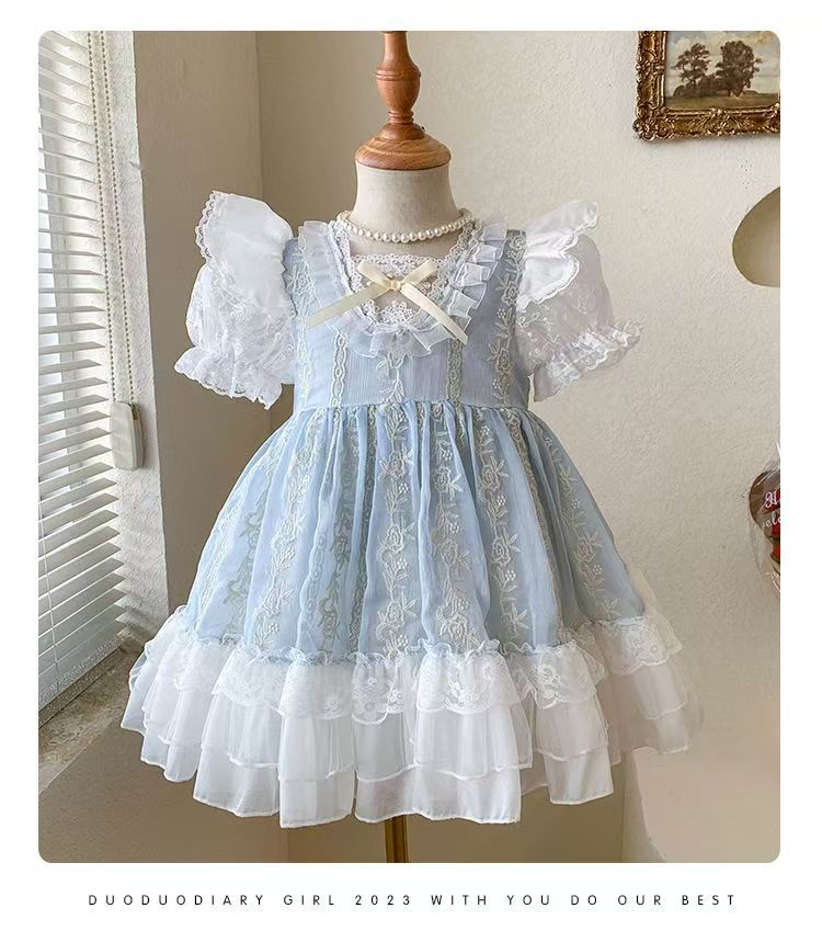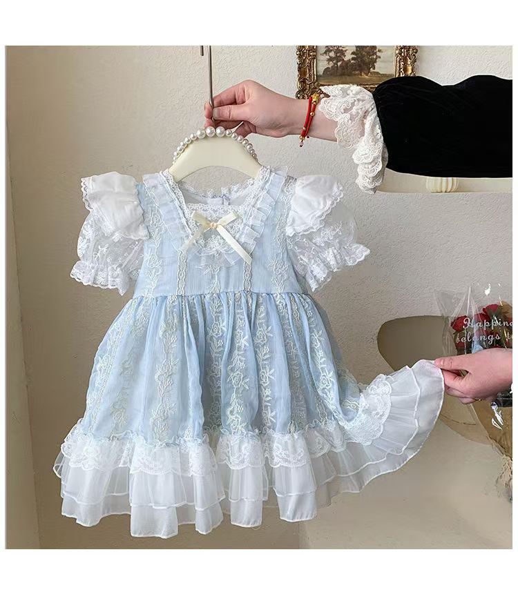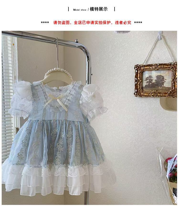 2024 여름 새로운 스타일 서양식 로리타 공주 원피스 어린이 소녀의 원피스 유행 아기 소녀의 얽히고 설킨 원피스스토어 가기