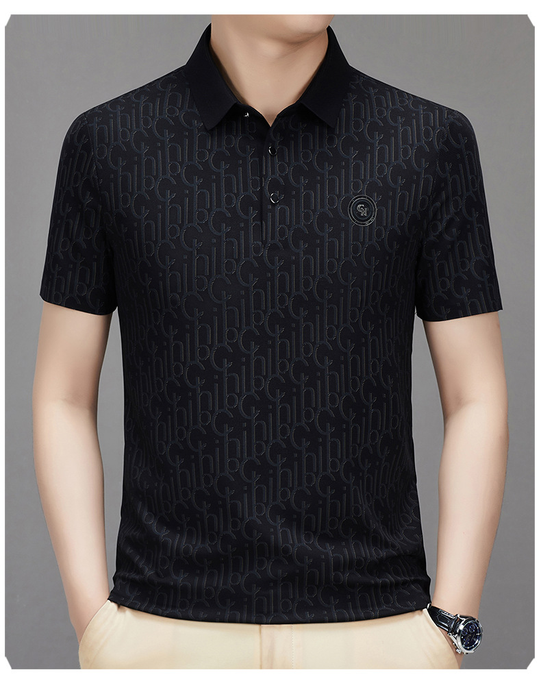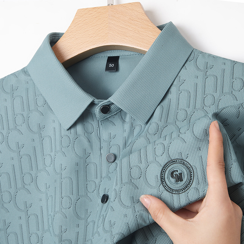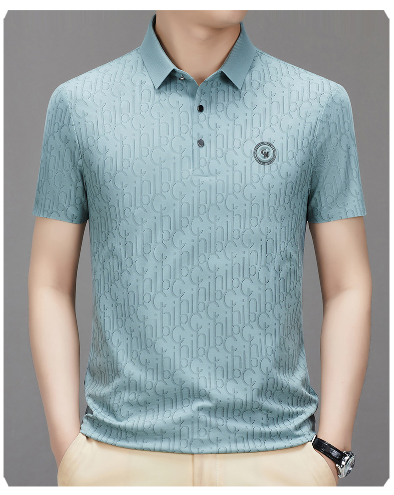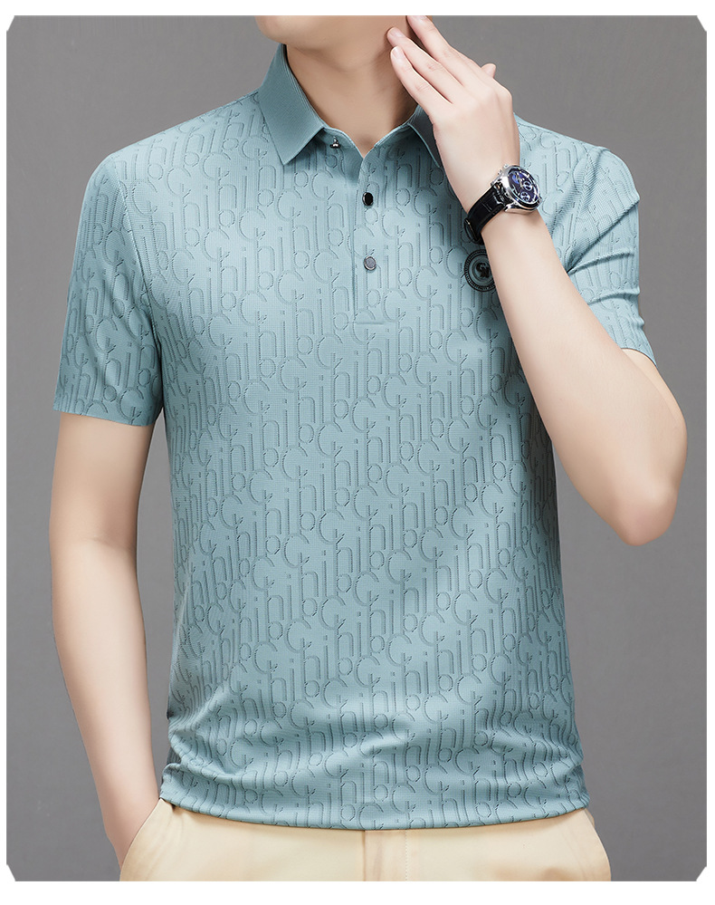 토미 조닝 턴 아버지의 날 아이스 실크 티셔츠 멀 베리 실크 반팔 티셔츠 남자 여름 새로운 중년 라셀 폴로