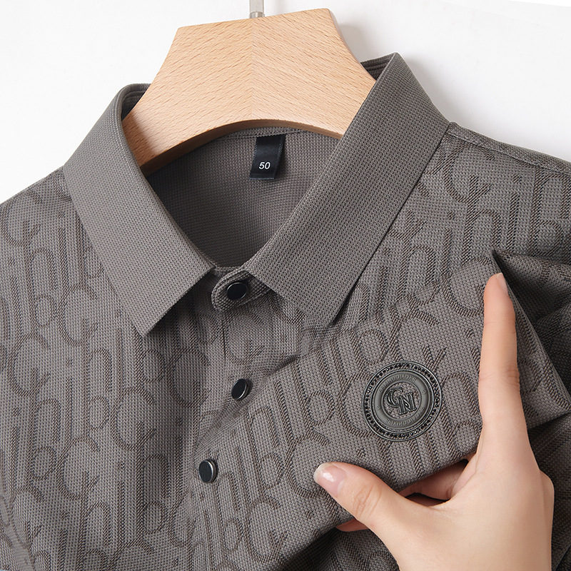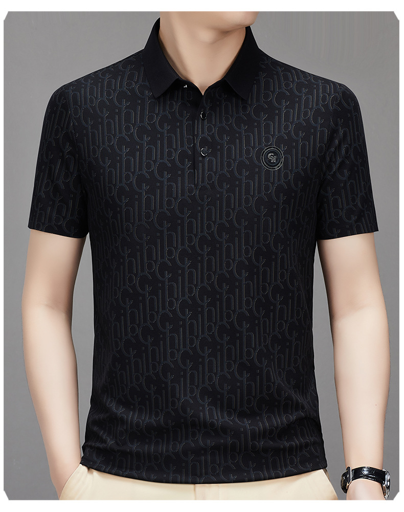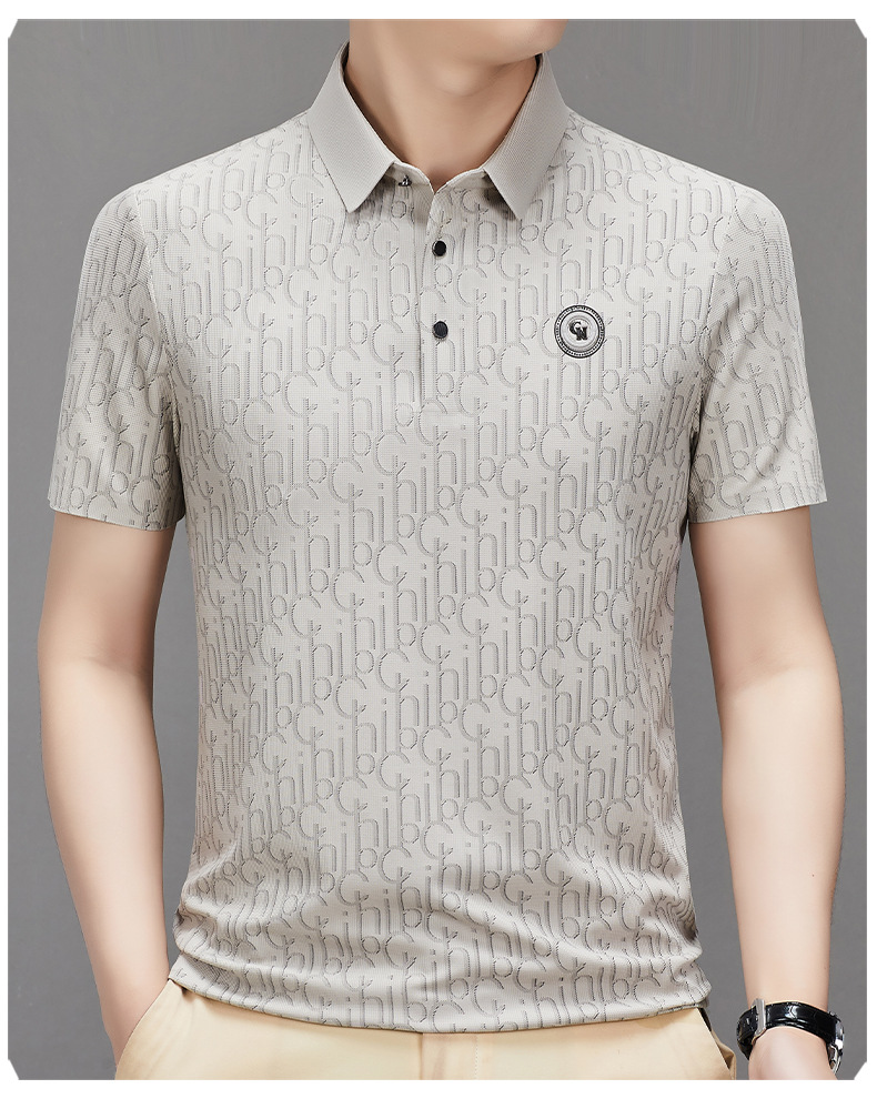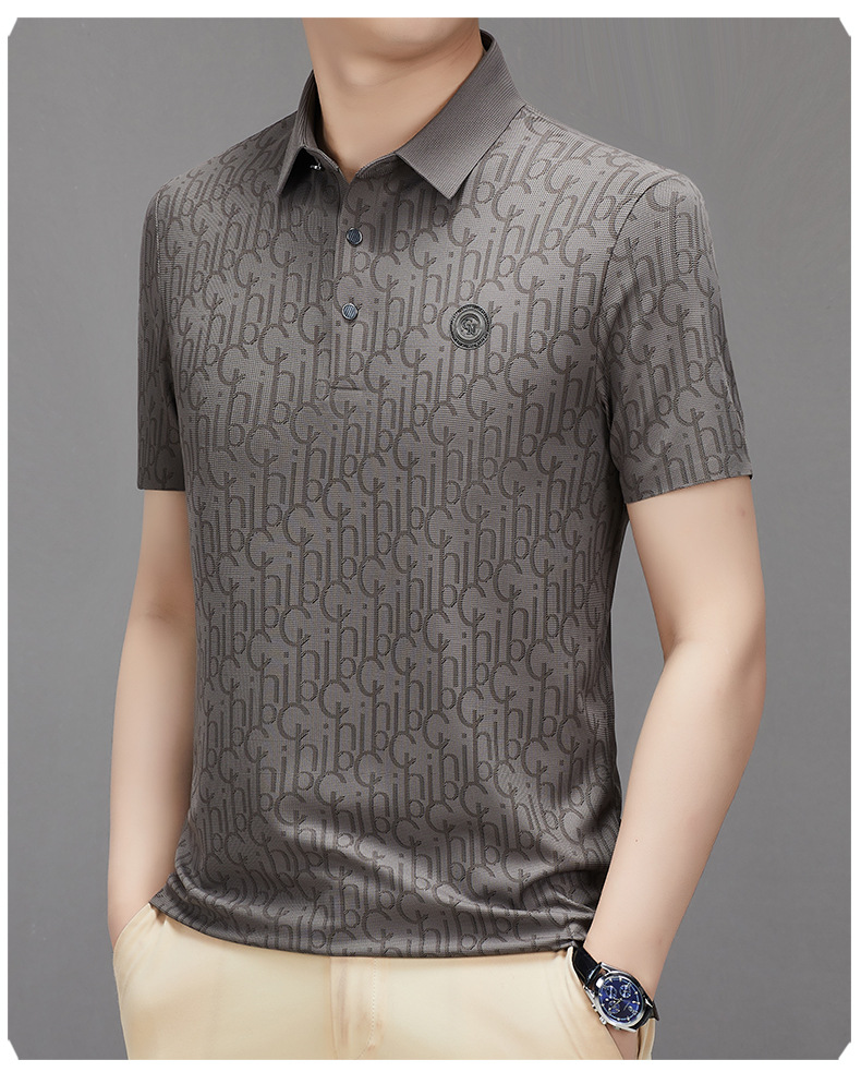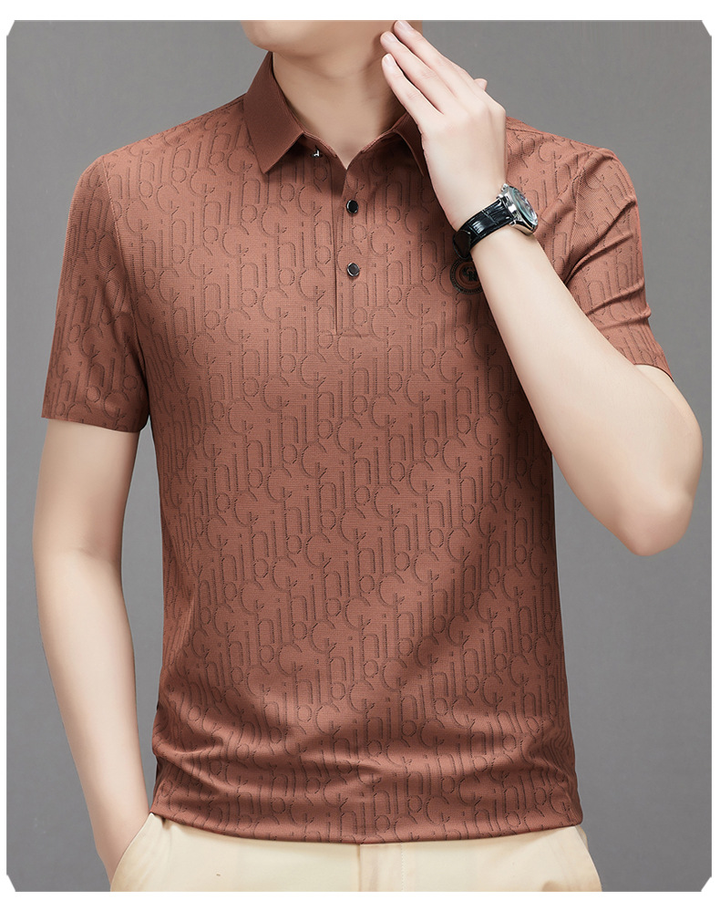 토미 조닝 턴 아버지의 날 아이스 실크 티셔츠 멀 베리 실크 반팔 티셔츠 남자 여름 새로운 중년 라셀 폴로