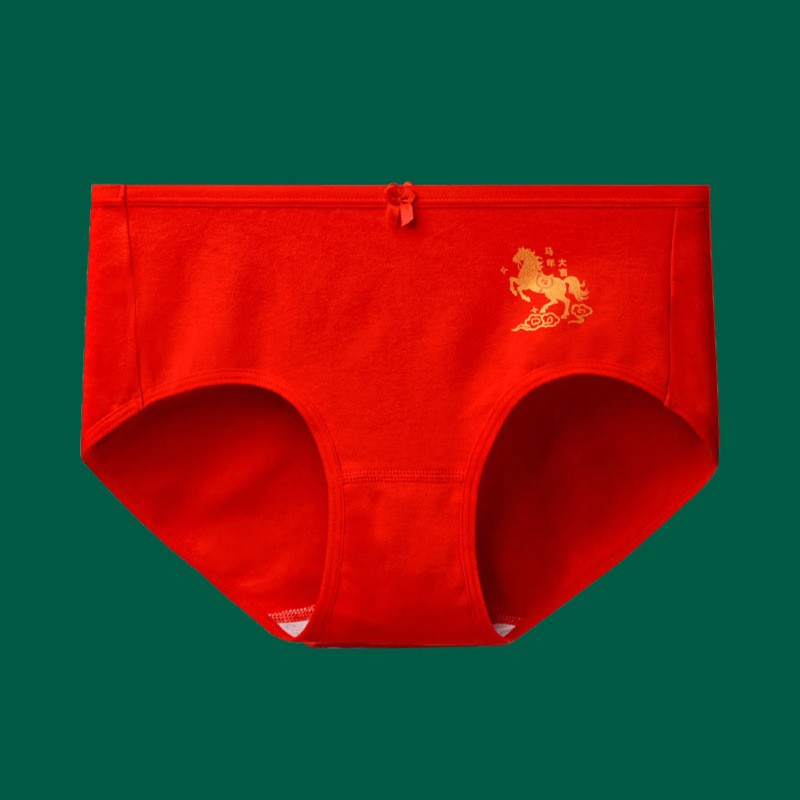말띠 여성용 삼각팬티, 빨간색 웨딩 중간허리 팬티, 말띠 여성용 빨간색 반바지, 도매 힙업 팬티