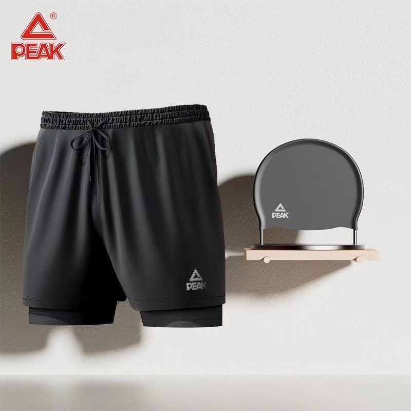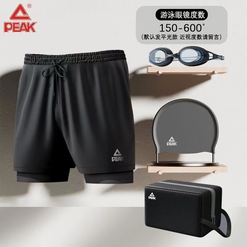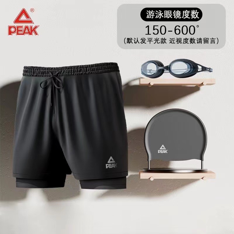 피크 수영 트렁크 남성 안티 당혹감 더블 레이어 느슨한 수영 트렁크 성인 새 수영복 세트 고글 수영 캡 장비스토어 가기