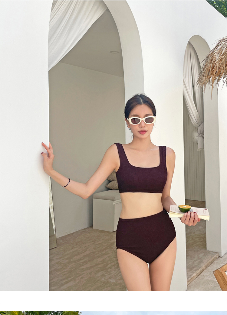 수영복 여성용 2023 다크 브라운 비키니 섹시 스플릿 작은 플랫 앵글 사이즈 가슴 슬림 벨리 커버링 인 온천 수영복스토어 가기