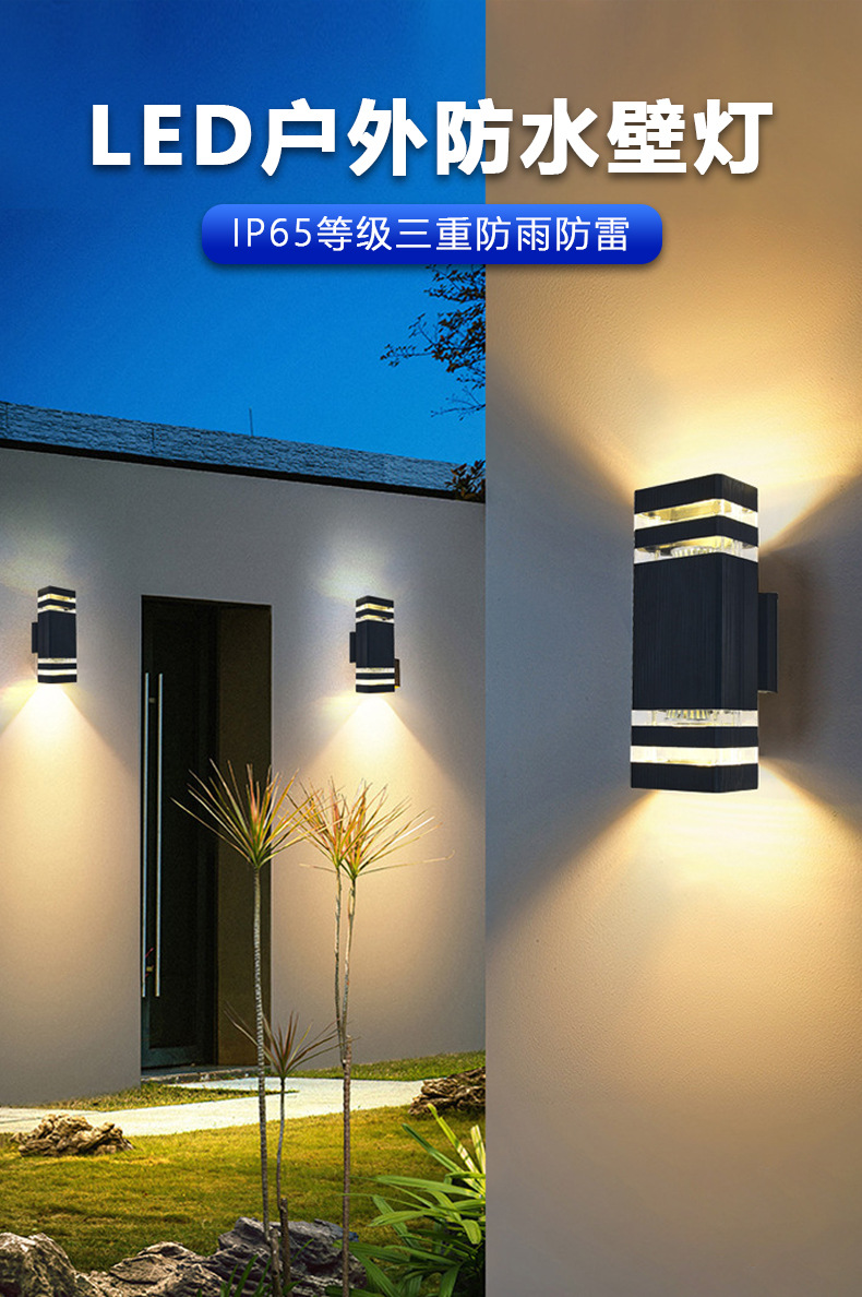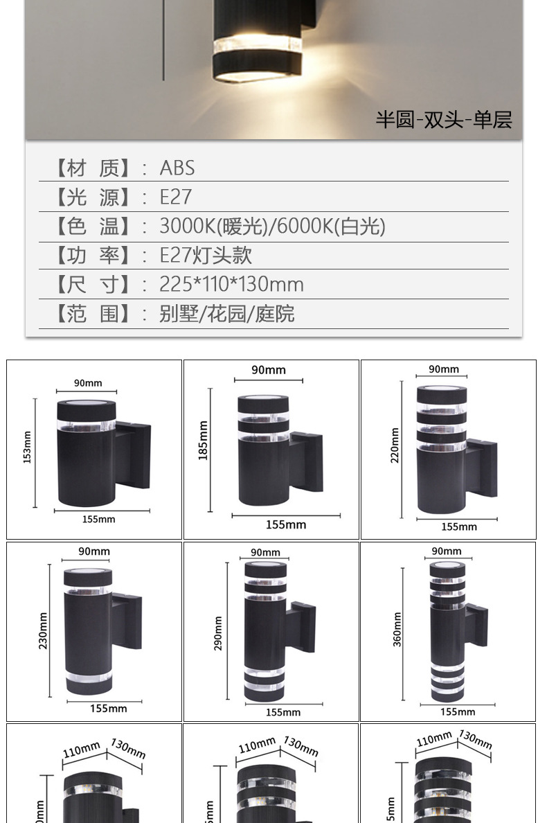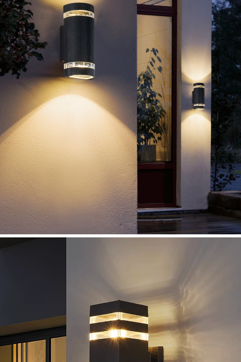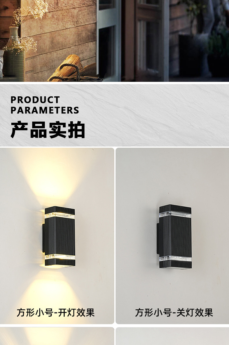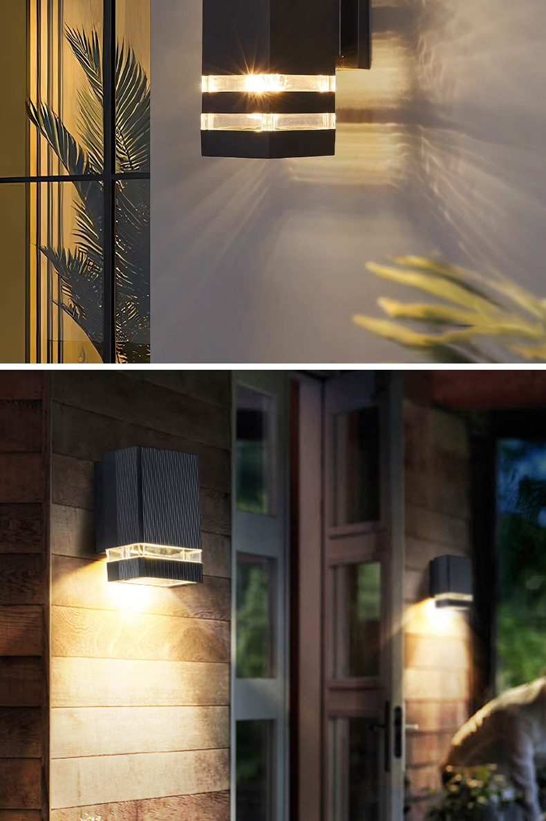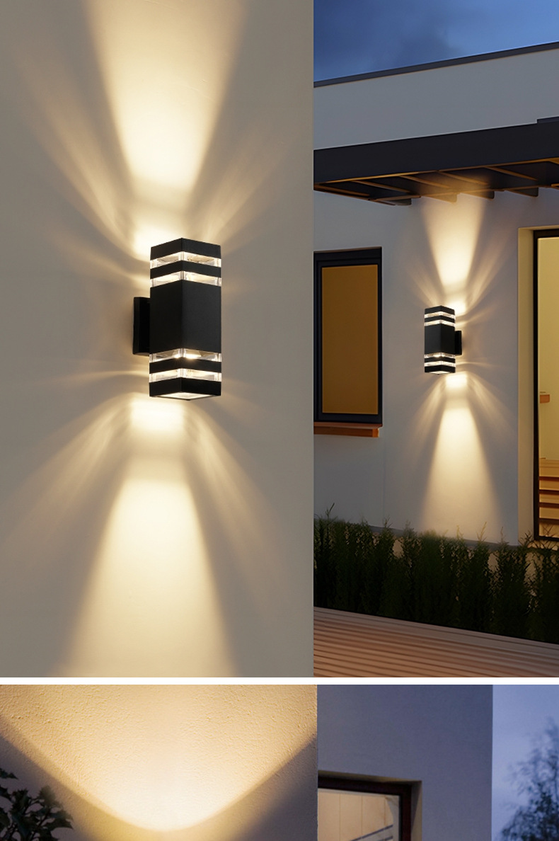 야외 방수 벽 램프 더블 헤드 위아래로 빛나는 안뜰 복도 도어 헤드 라이트 스퀘어 플라스틱 유럽 게이지 E27 램프 홀더스토어 가기