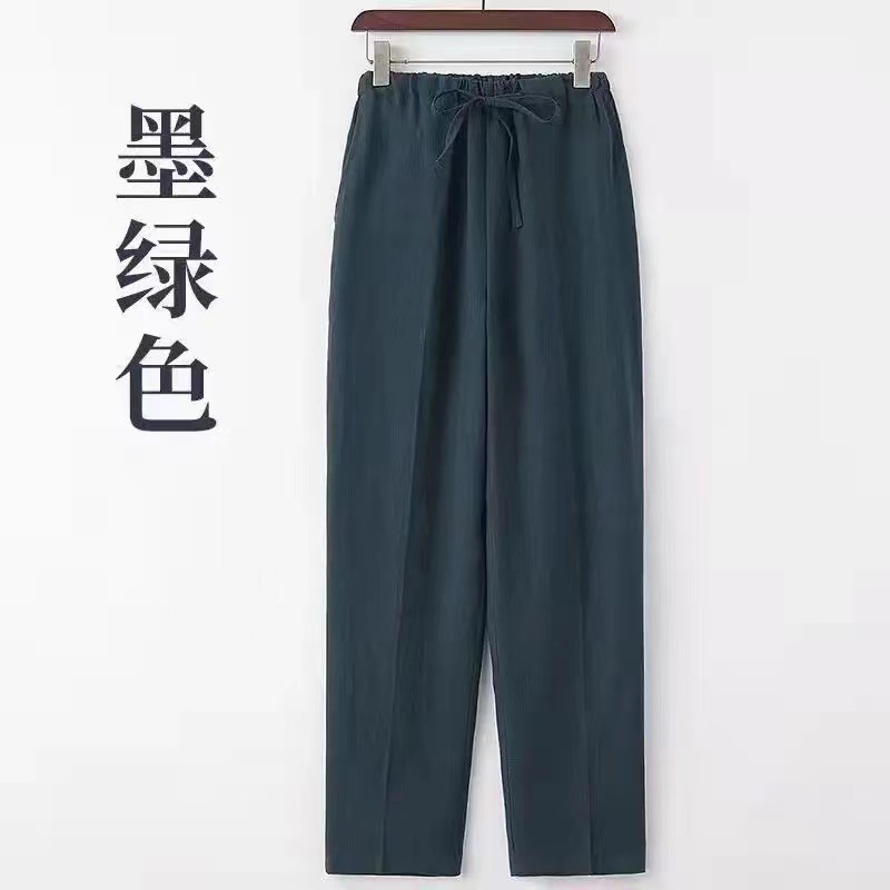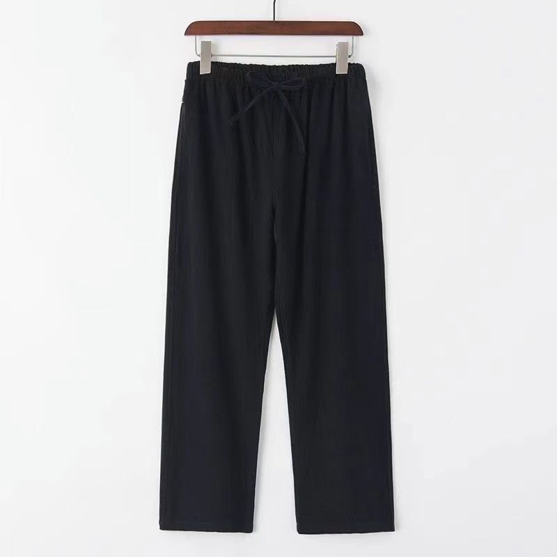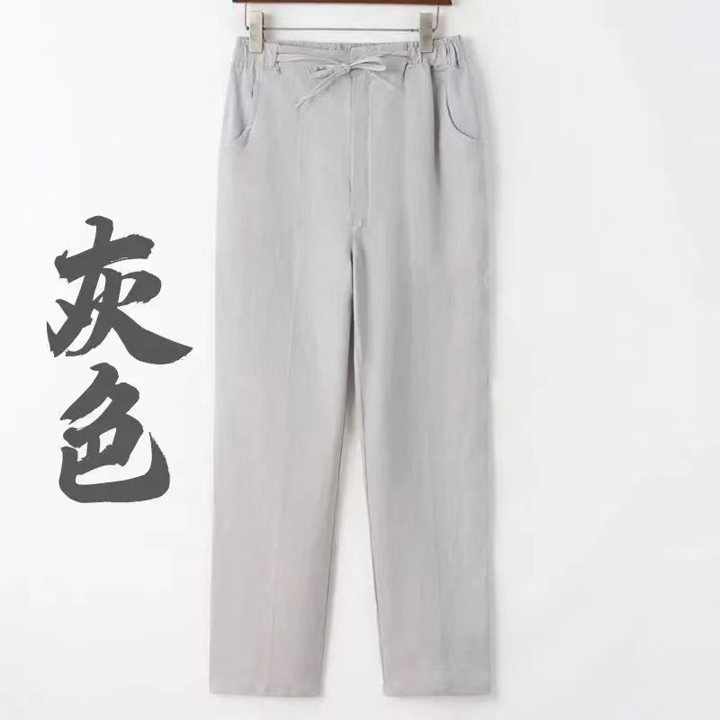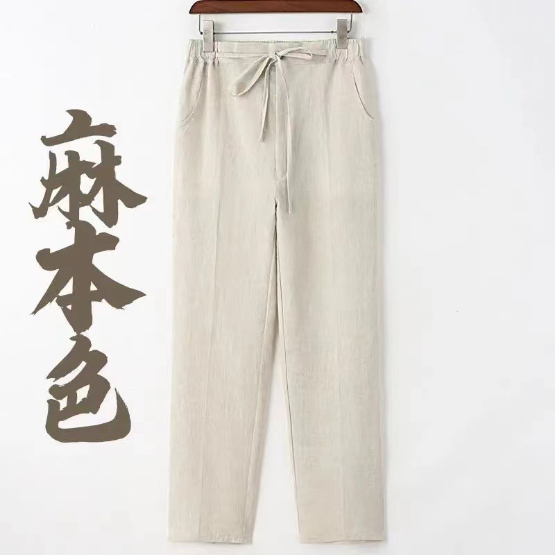 솔리드 컬러 리넨 캐주얼 바지 남성용 여름 얇은 중국 스타일 코튼 및 리넨 바지 남성용 루즈 타이트 웨이스트 스트레이트 바지