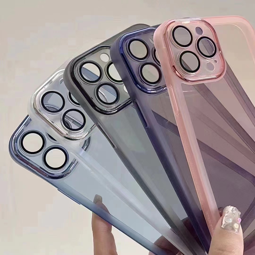 렌즈 필름이 내장된 iPhone17 휴대폰 케이스, Apple 16 투명 15 풀 소프트 TPU 심플 14 보호 케이스