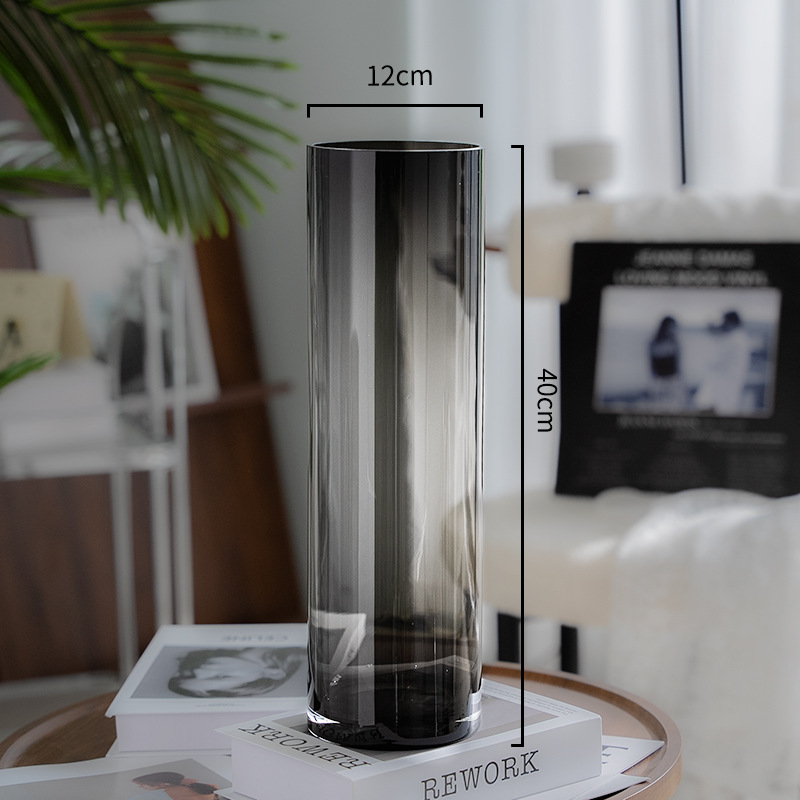 대형 투명 스트레이트 유리 꽃병 도매 거실 바닥 풍부한 대나무 꽃 수경 꽃 장식품스토어 가기