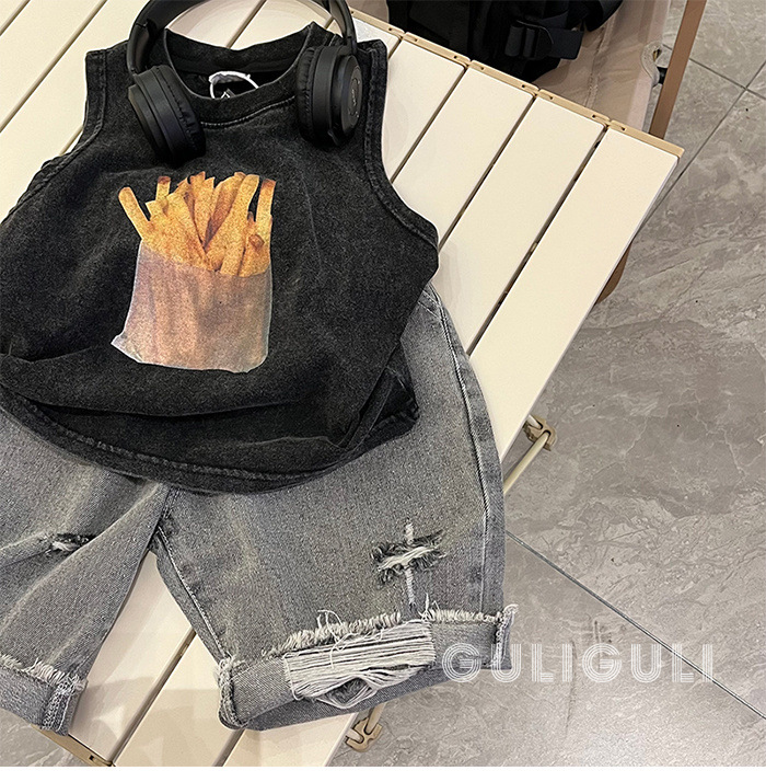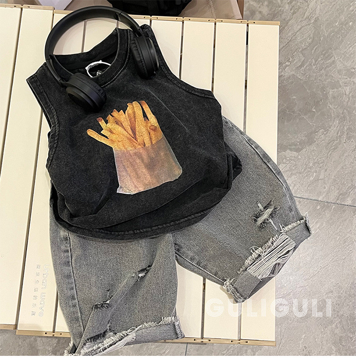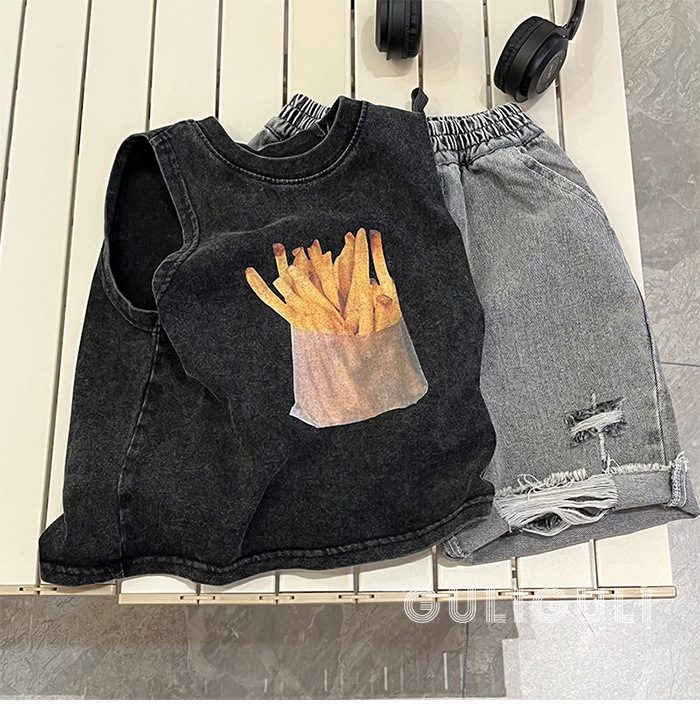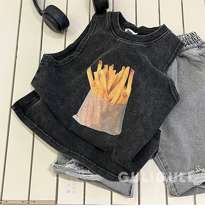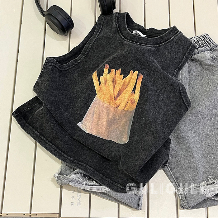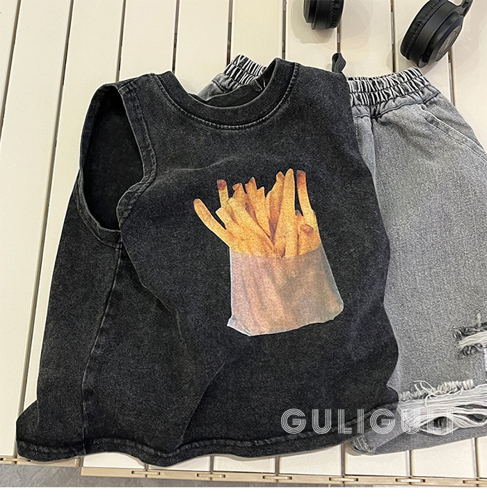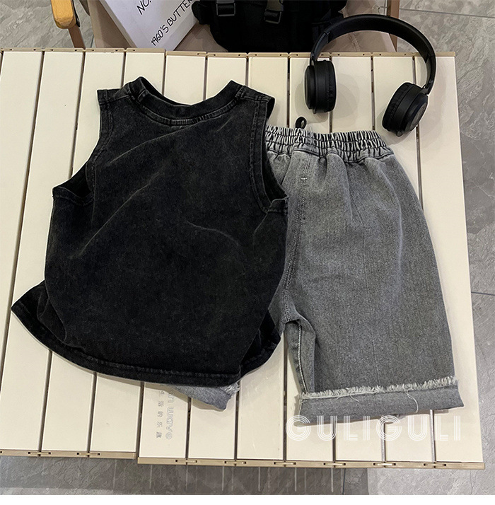 여름 어린이 빈티지 올드 블랙 코튼 잘 생긴 소년 민소매 느슨한 티셔츠 어린이 조끼 트렌디 탑스토어 가기