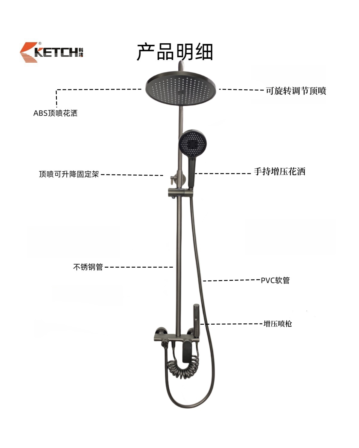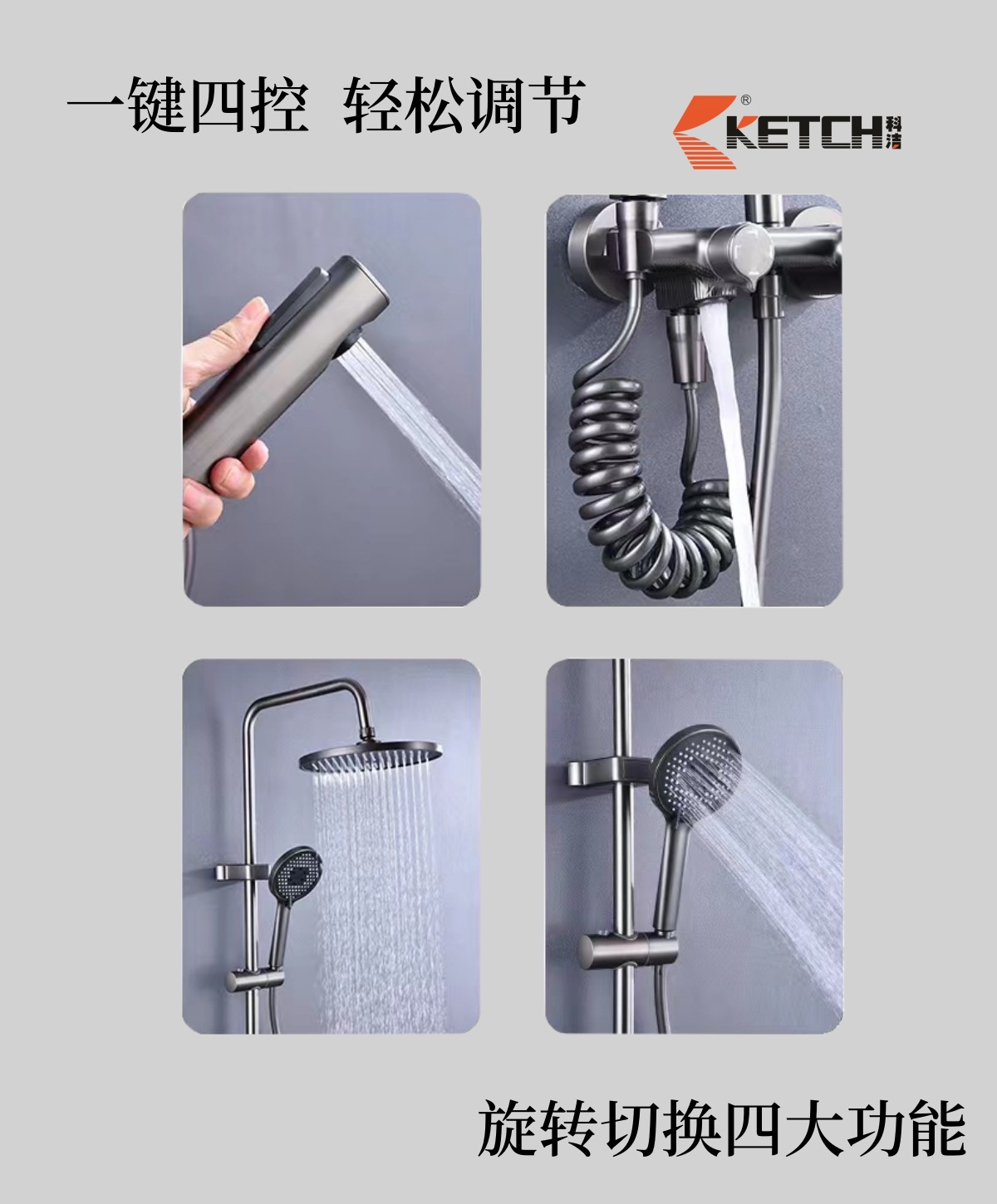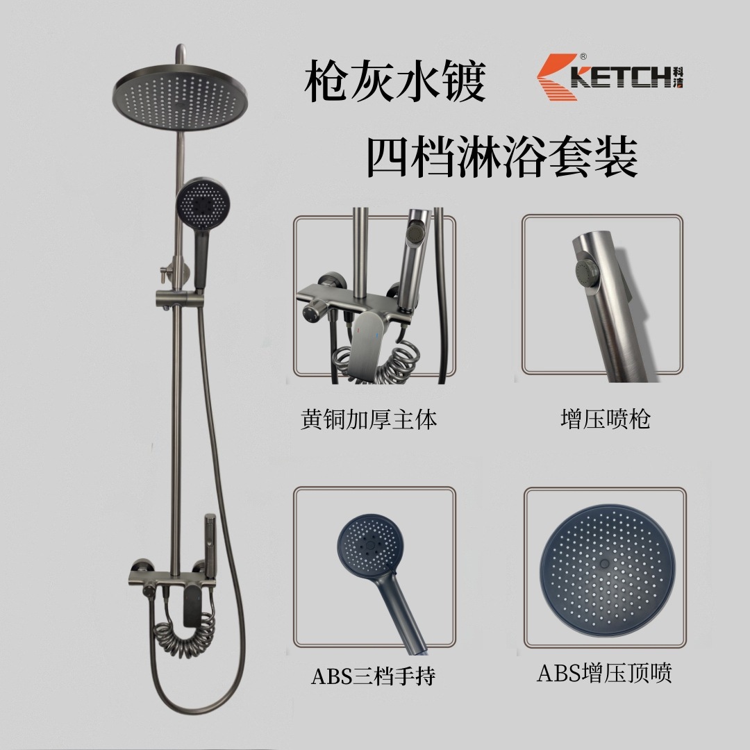 케이지 건 그레이 샤워 샤워 세트 모든 구리 샤워 샤워 샤워 욕실 샤워 샤워 가정용 온도 조절 부스터 노즐